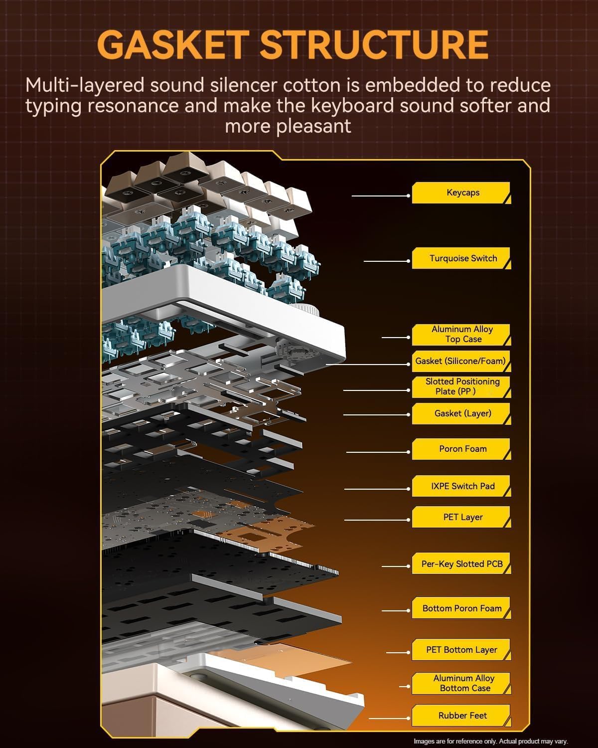 Aluminium Alloy Cover: The usb keyboard case is made of top-tier aluminium material for superior heat dissipation performance, robustness and durability to ensure the longevity of the keyboard. Exquisite powder coating process, feel luxurious, prevent fingerprints and keep the shell neat. In addition, GASKET design that greatly reduces cavity noise and improves typing sound. It’s ideal for a satisfying low-noise typing experience in both office and gaming environments
