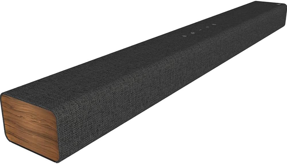 Design (Sound Bar 2021) – A sound bar aesthetic that complements both your TV and home decor. Stylish wood-tone side panels, elevated controls, and premium fabric make this a speaker that looks as good as it sounds.