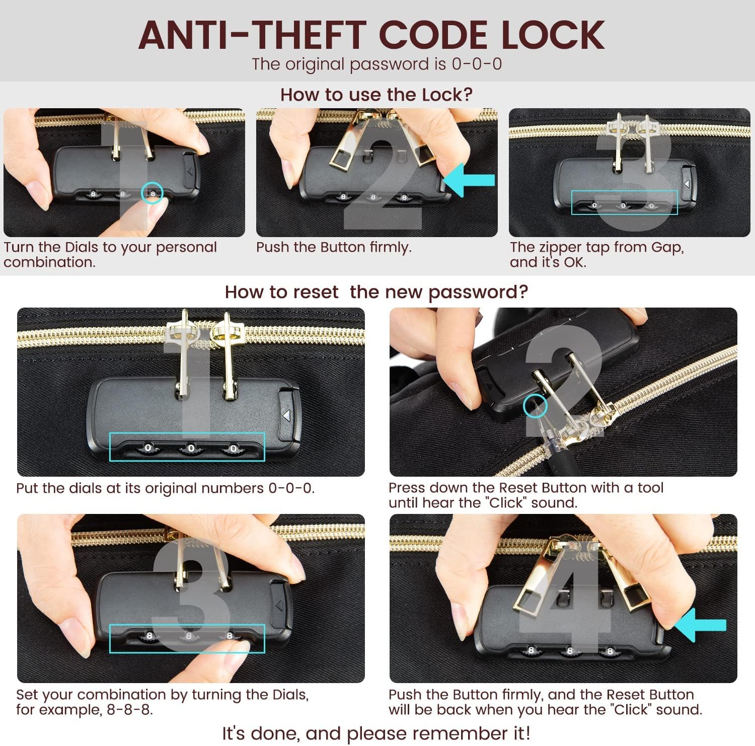 【ANTI-THEFT DESIGN】The laptop backpack with Fixed Password Lock and an anti-theft pocket on the back. It is safe guaranteed for protecting your valuable items inside. No need to worry theft easily opening your backpack when you are travelling or lining up.