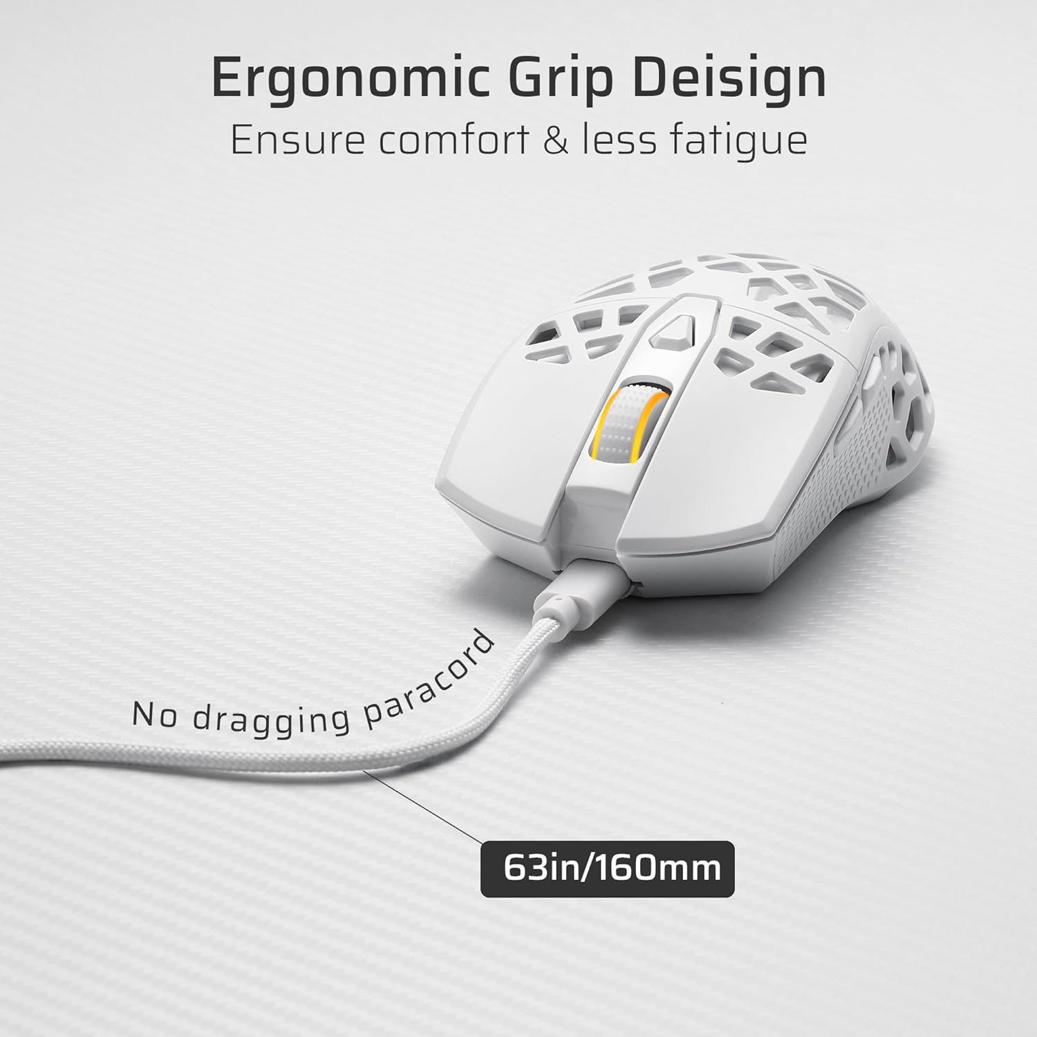 Lightweight Honeycomb Design — Weighing only 79g, the GM023 mouse features a breathable ergonomic honeycomb shell for enhanced airflow, reducing sweat, and ensuring long-lasting comfort. Designed for effortless movement, perfect for extended gaming sessions.