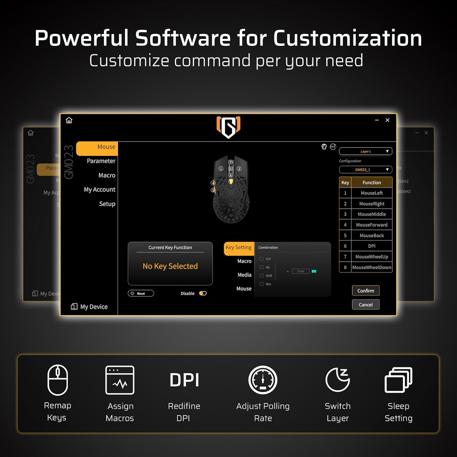 Pro Software Support — Assign Macros, remap key functions, redefine 6-Step DPI, and fine-tune polling rate with the powerful LTC driver. Perfect for gamers and professionals seeking a tailored experience.