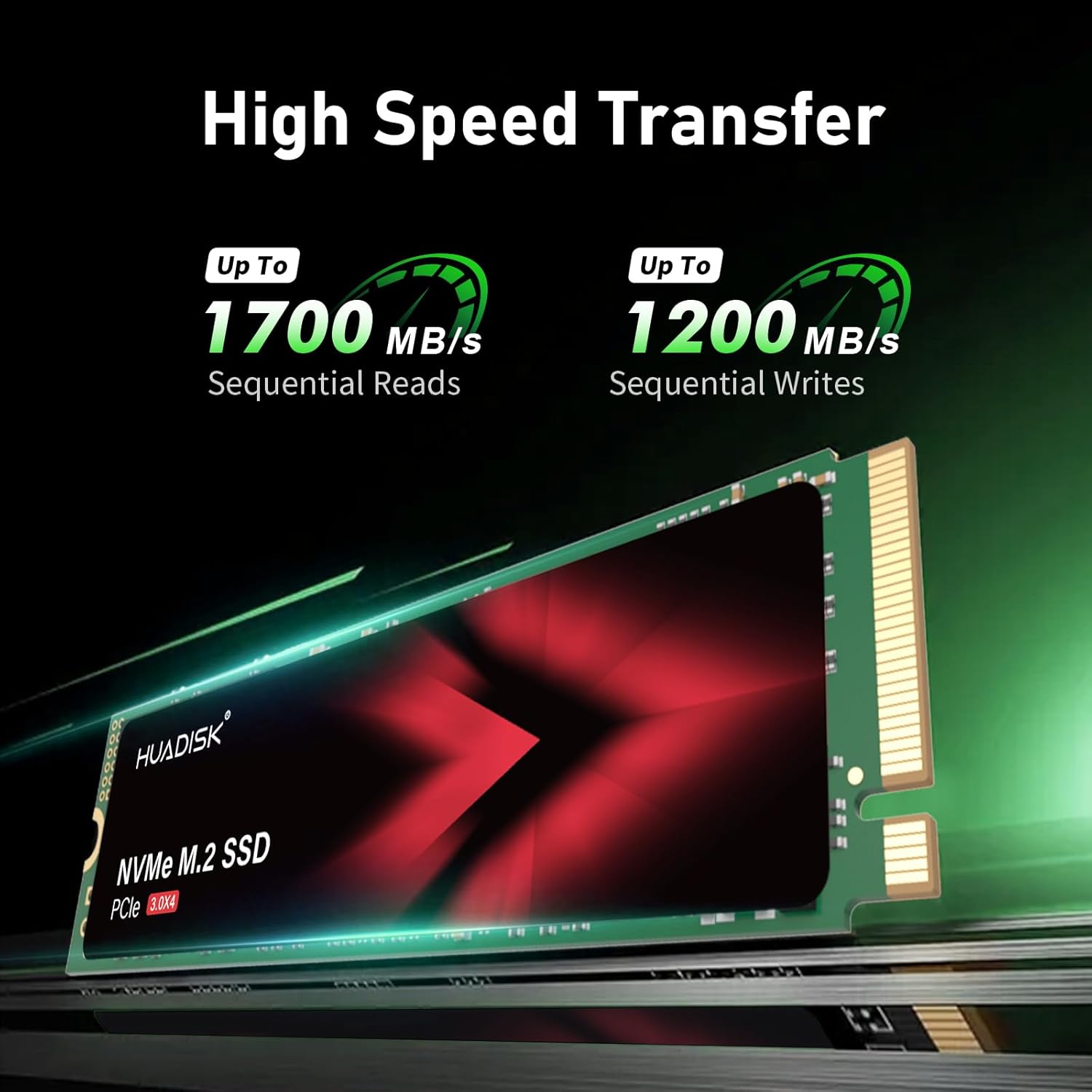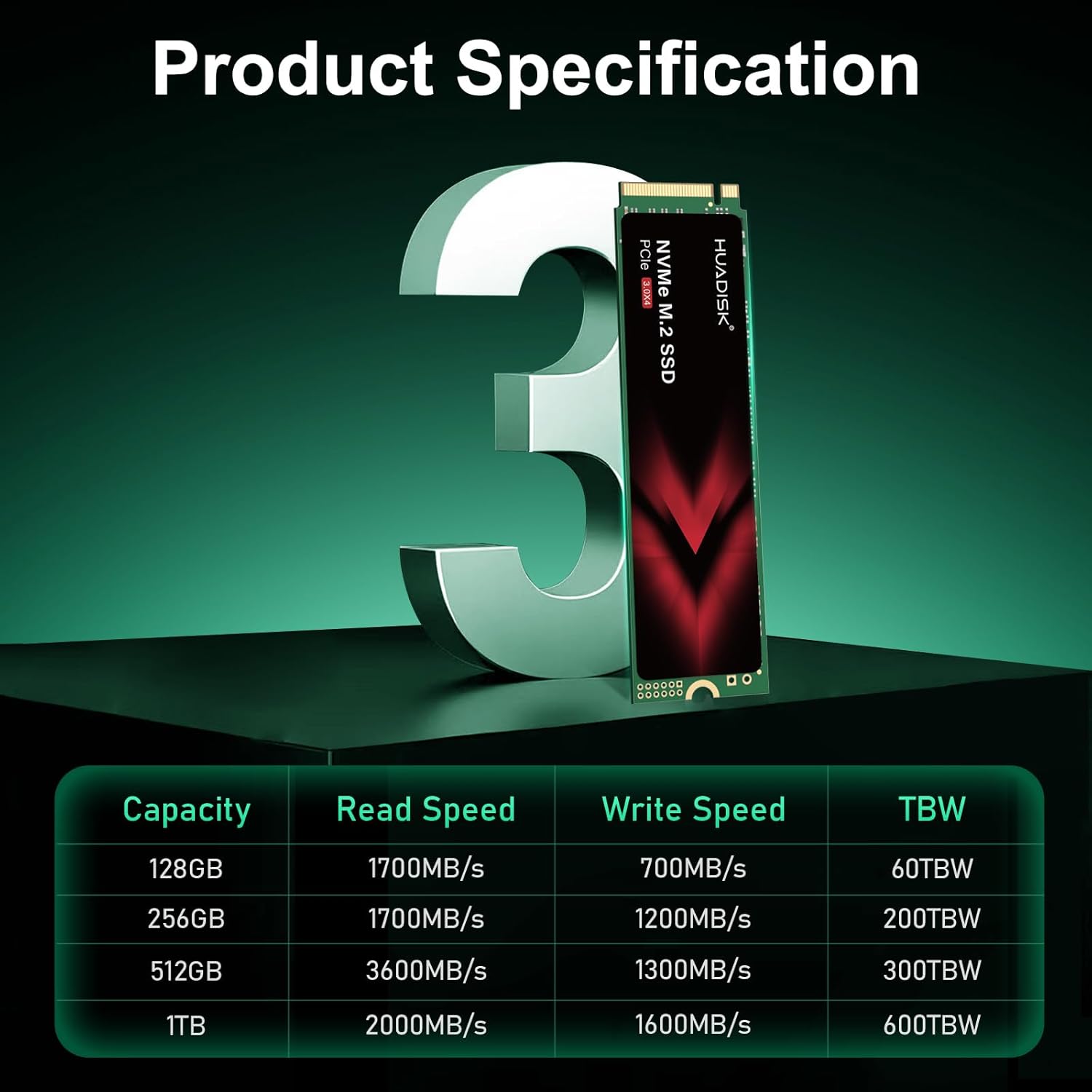 High Speed M.2 NVMe: Huadisk Gen3x4 M.2 NVMe 128gb NVMe ssd rockets to read speeds of 1700MB/s,slashing wait times for system starts,app openings, and file retrievals. The NVMe drive is ready for instant,high-performance storage action