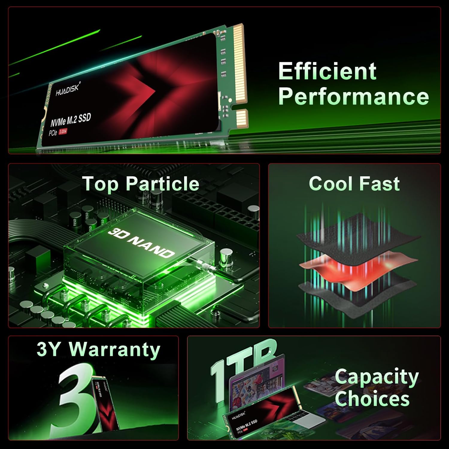 Universal Compatibility: Huadisk NVMe SSD delivers instant plug-and-play upgrades for PCs and laptops, support for Windows 7(NVMe SSDs require additional drivers), Windows 8, Windows 10, Windows11 and Linux