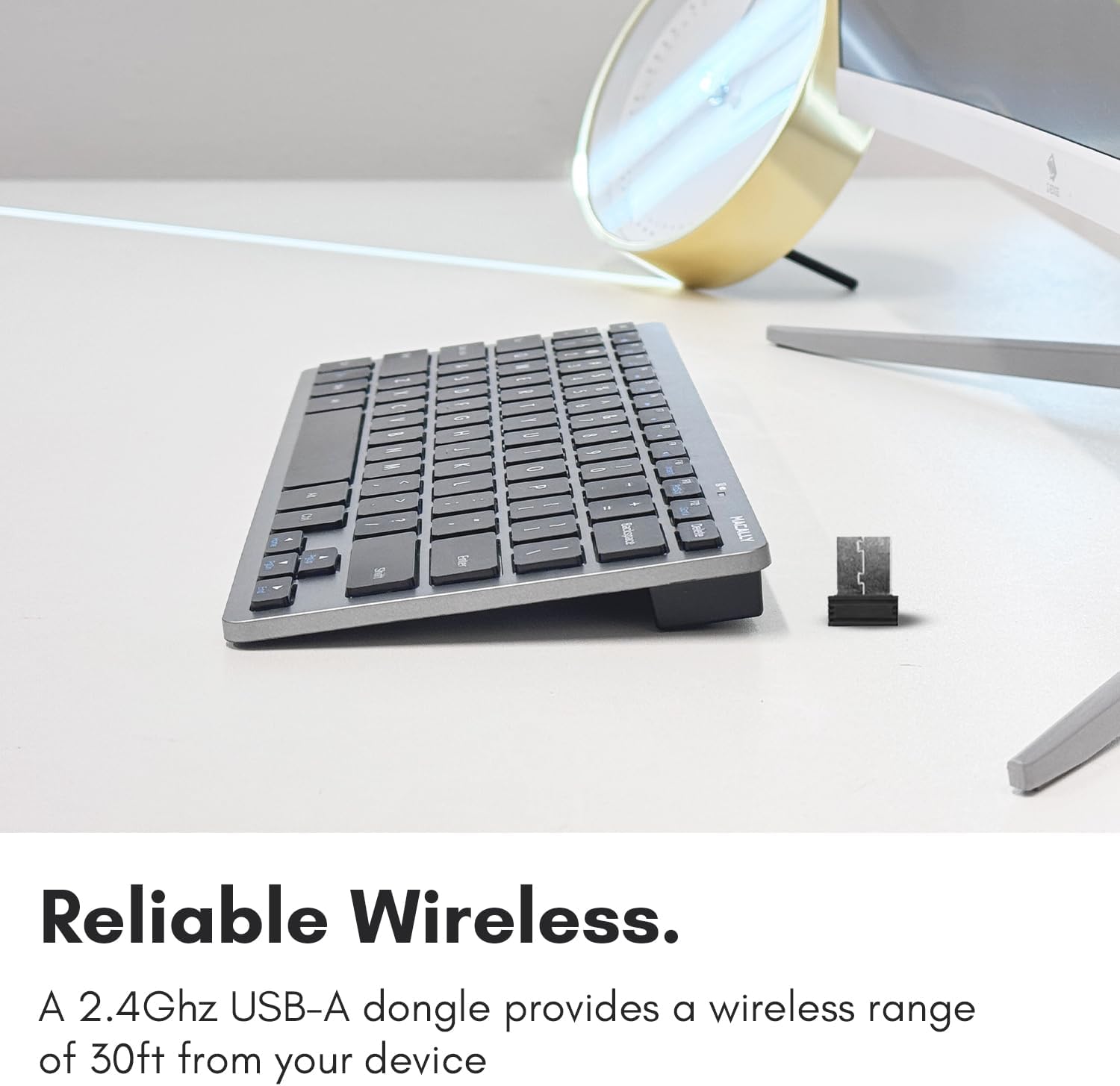 𝗕𝘂𝗶𝗹𝘁 𝗳𝗼𝗿 𝗣𝗖 𝗮𝗻𝗱 𝗖𝗵𝗿𝗼𝗺𝗲: Our small wireless keyboard is completely plug and play with any PC or Chromebook with a USB-A port, no drivers or software needed.