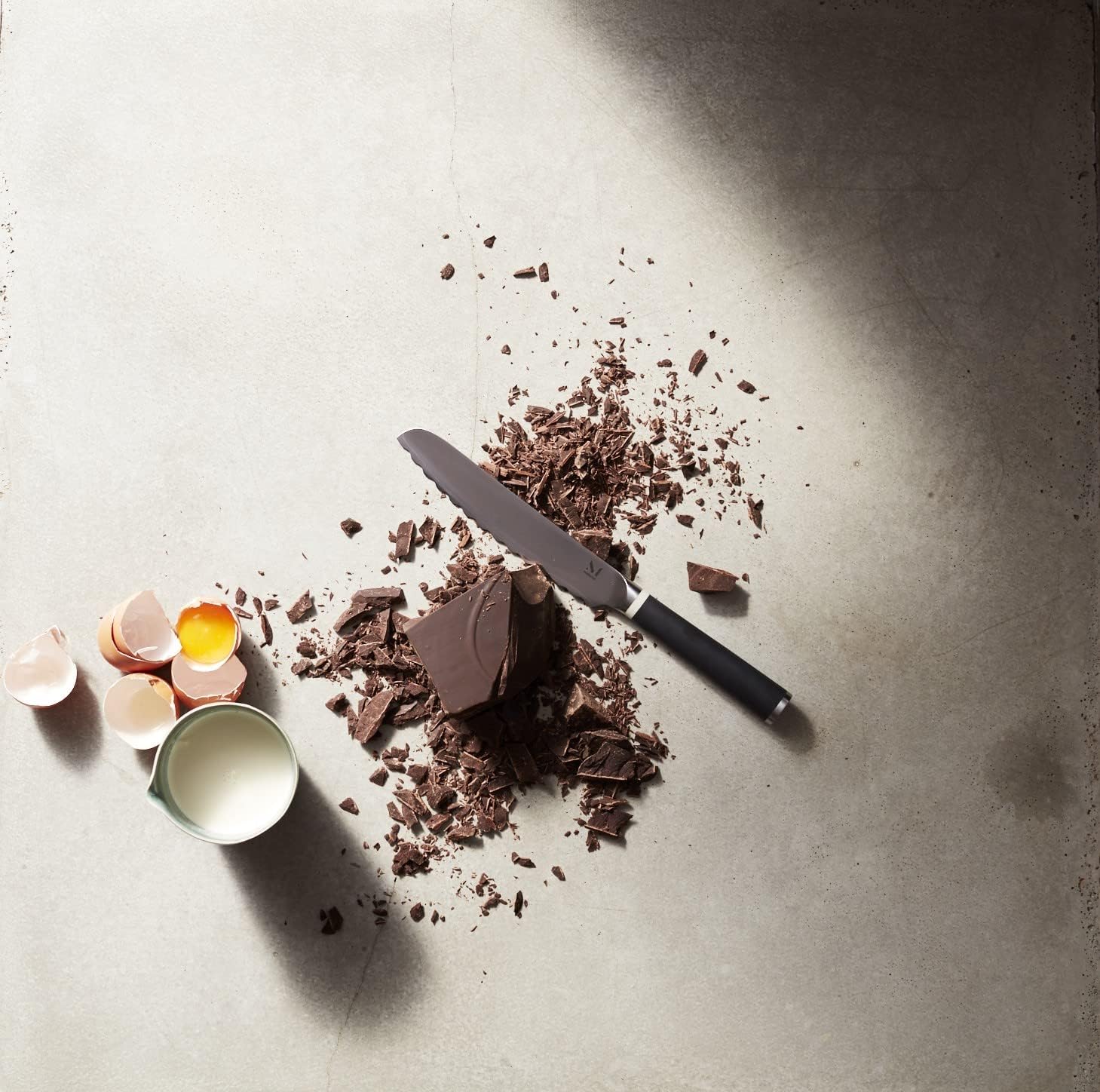 Material, Serrated Bread Knife 6″, Bread Knife for Homemade Bread, Serrated Kitchen Knife, Carbon Stainless Steel Santoku-Inspired Blade, Razor-Sharp addition to your Chef Knife Set, Almost Black