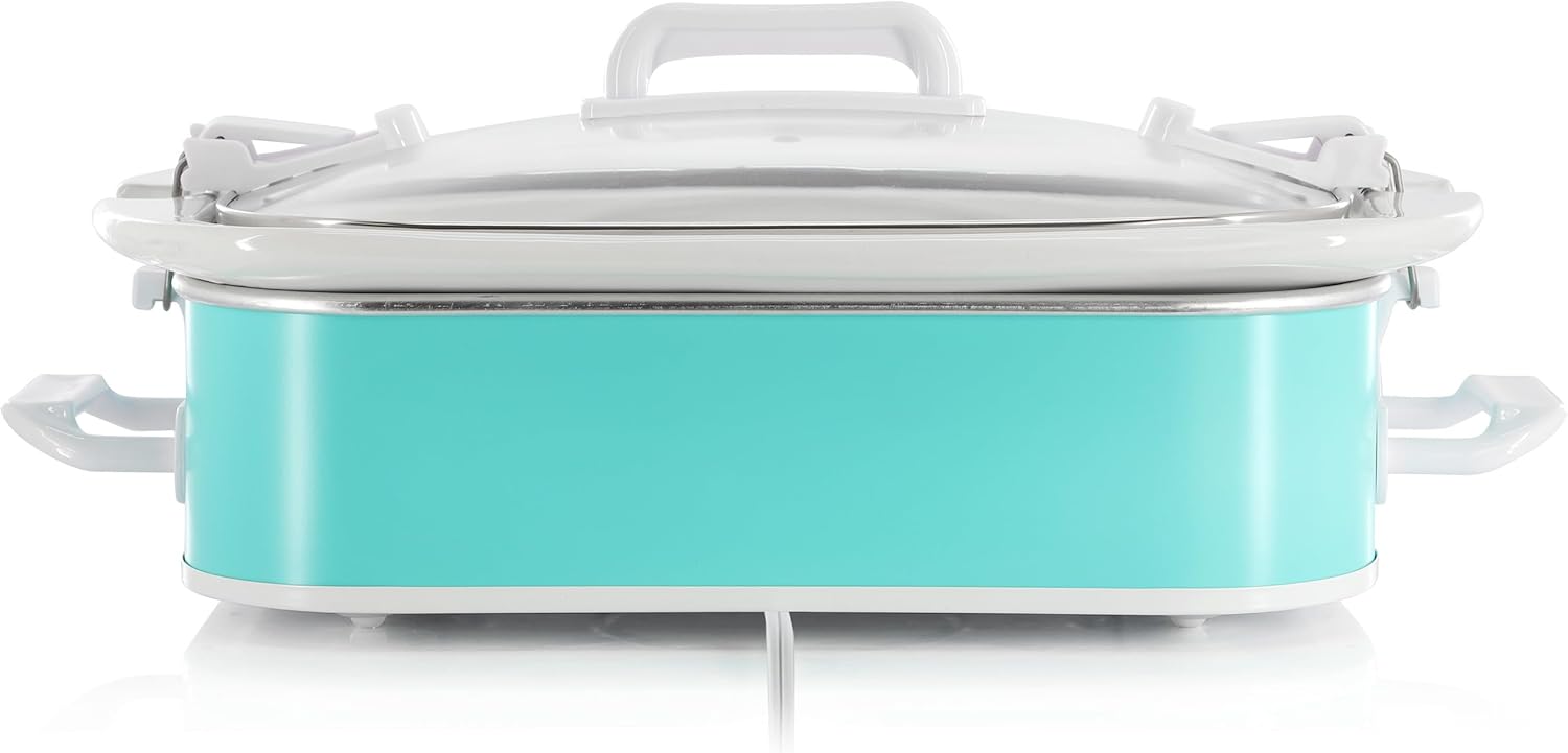 Slow cooker offers versatile and convenience. Crock and lid include a latch & hook locking system for cook and carry transportation.