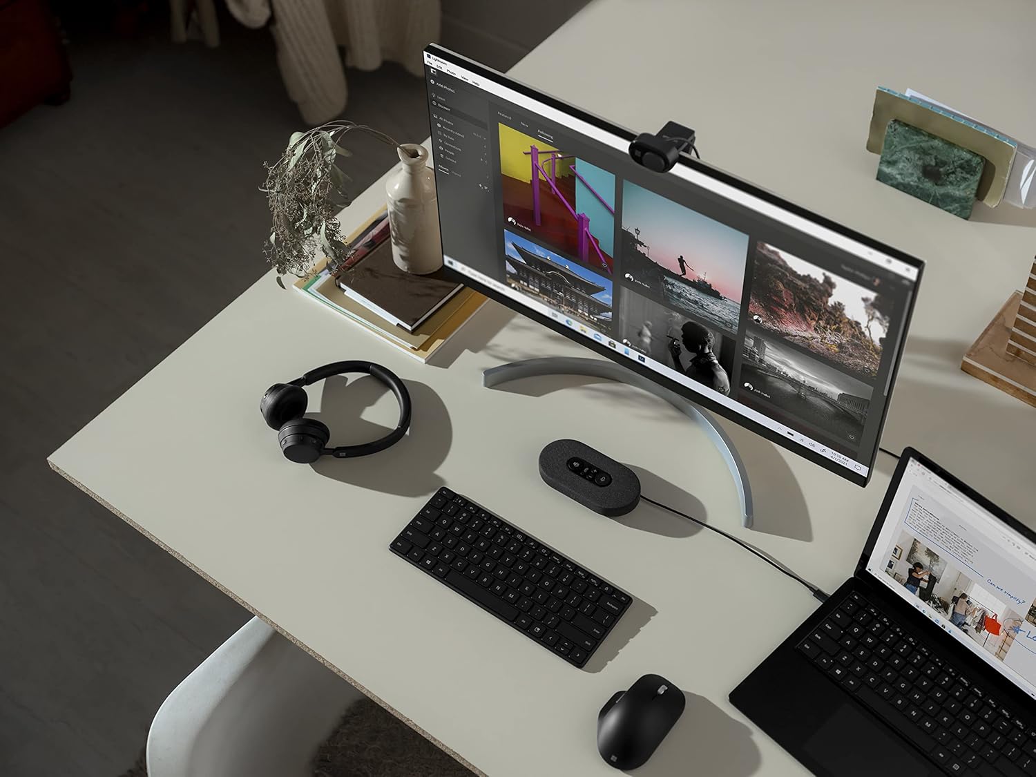 Look your best on face-to-face calls and Microsoft Teams meetings. A full HD camera with a versatile, easy-to-mount system adds reliable, high-quality video to your laptop workspace. Featuring high-quality video with HDR and True Look that deliver facial retouch and auto light adjustment.