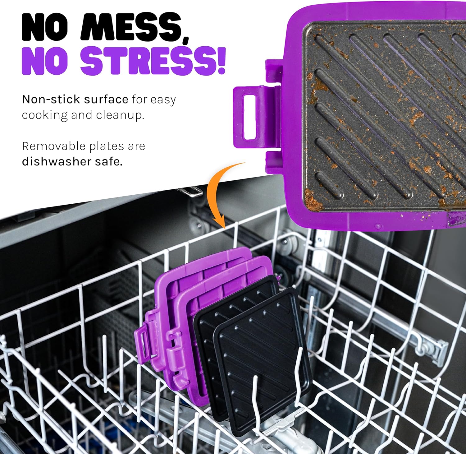 Microwave Sandwich Maker, Toaster, 4 Minute Grill, Grilled Cheese, Crispy, Toastie Maker, Panini Press, No Wire & Dishwasher Safe, Microwave Grill, Office, Home, Travel & School Dorms (Purple)