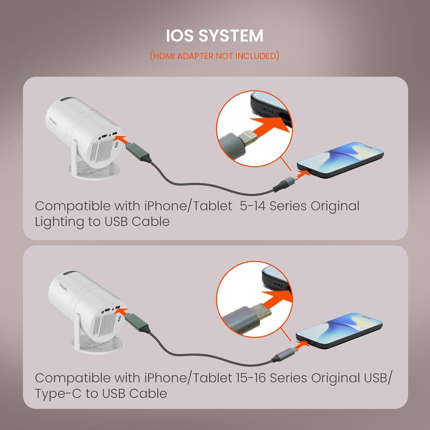 【Two-Way Bluetooth 5.2 & Seamless Connectivity】Note: projector bluetooth connection supports audio transmission only. This mini portable projector for i phone, it’s features advanced Bluetooth 5.2 technology for stable wireless audio transmission. Easily connect smartphones, speakers, or headphones for immersive sound. With HDMI, USB, and a 3.5mm jack, it supports versatile wired connections for gaming, movies, and presentations
