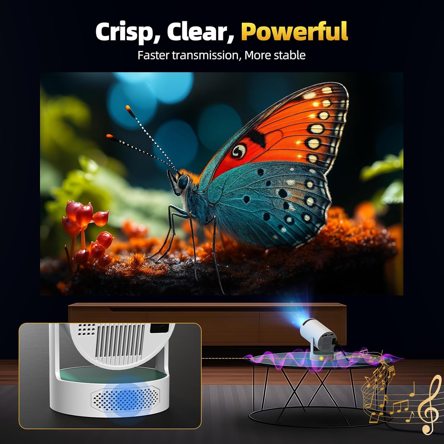 【5W Bass-Boosted Audio: All-in-One Immersive Sound】 Feel the difference with our upgraded 5W built-in speaker, now integrated directly into the rotating base. Enjoy richer bass and crystal-clear audio that outperforms the previous PR06 model. Wherever you are, fill the room with immersive, theater-like sound—no external speakers needed. Perfect for turning any movie projector night into a cinematic experience.