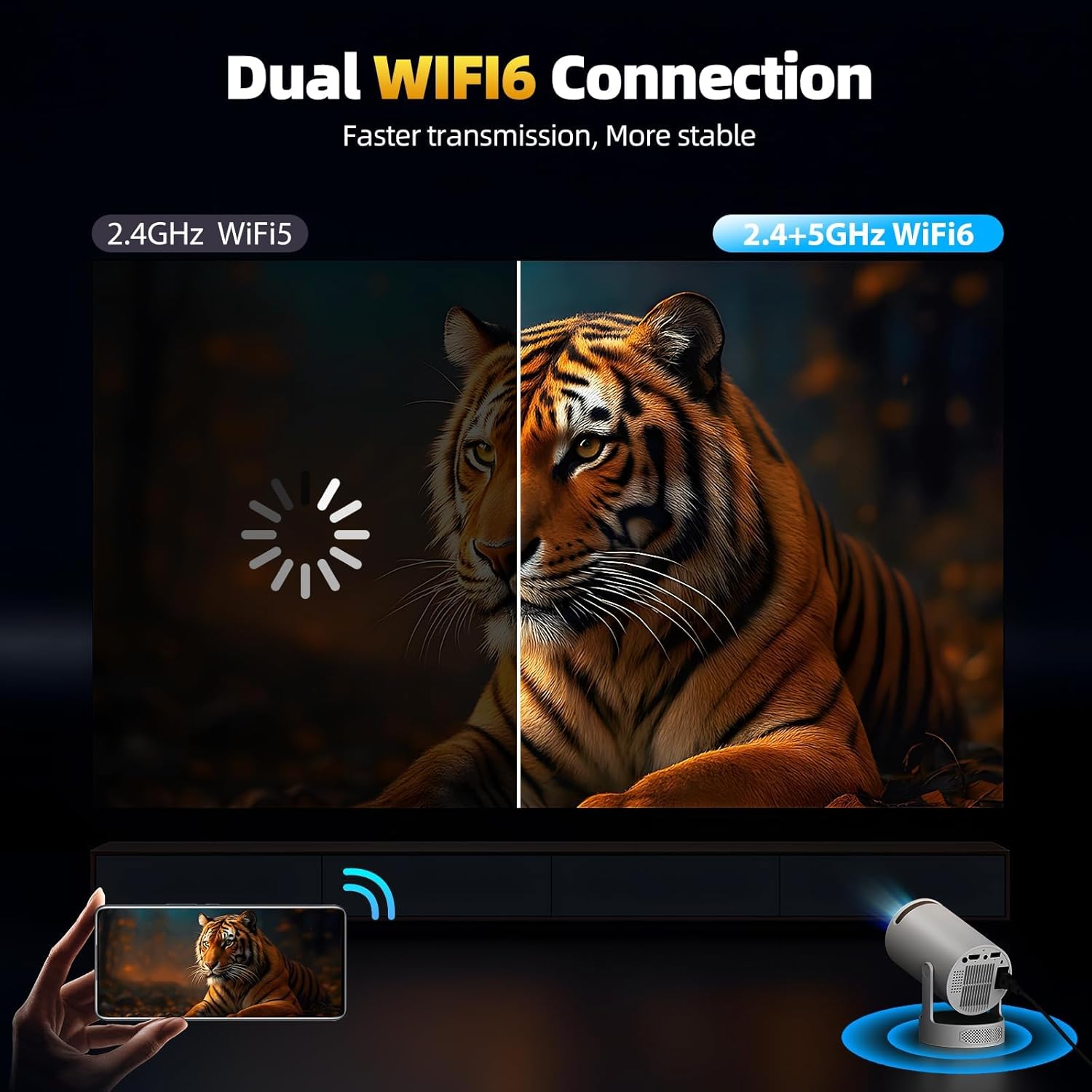 【Vivid Big-Screen Visuals: 4K-Ready & Bright HD Display】 Bring your favorite shows and movies to life with brilliant picture quality. Advanced LED tech, 300 ANSI lumens brightness, and a 1500:1 contrast ratio deliver vibrant, true-to-life colors. Ready for 4k projector decoding and native 720p resolution, this mini projector ensures sharp, stunning visuals—day or night.