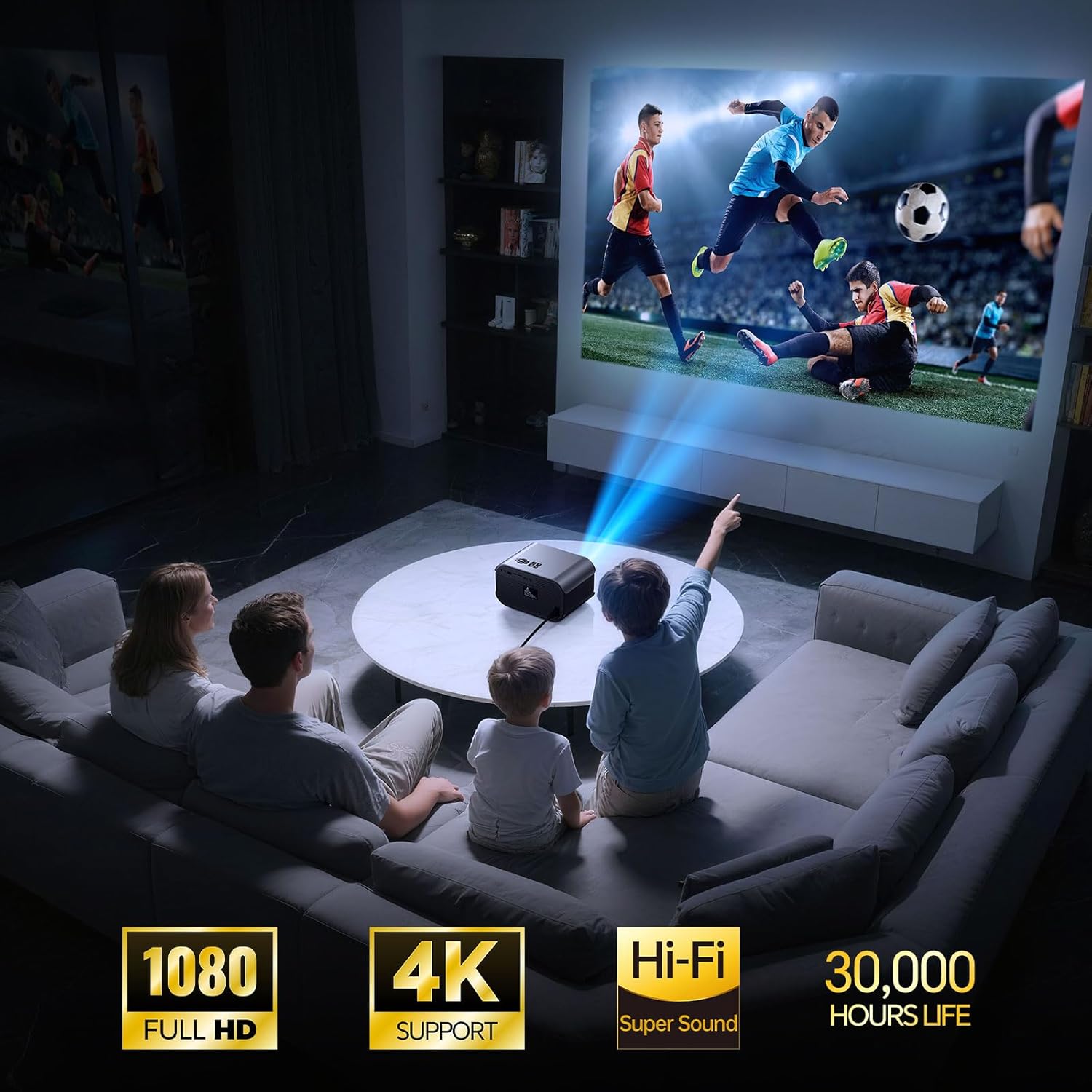 Ultra-Compact Design & multiple install ways: The smallest native 1080P mini projector, weighing only 4.5 lbs, making it the perfect companion for outdoor adventures, family gatherings, or cozy nights. Also, it can be supported table, a stand, or a ceiling mount, which makes you enjoy an excellent home cinema or gaming with friends at home.