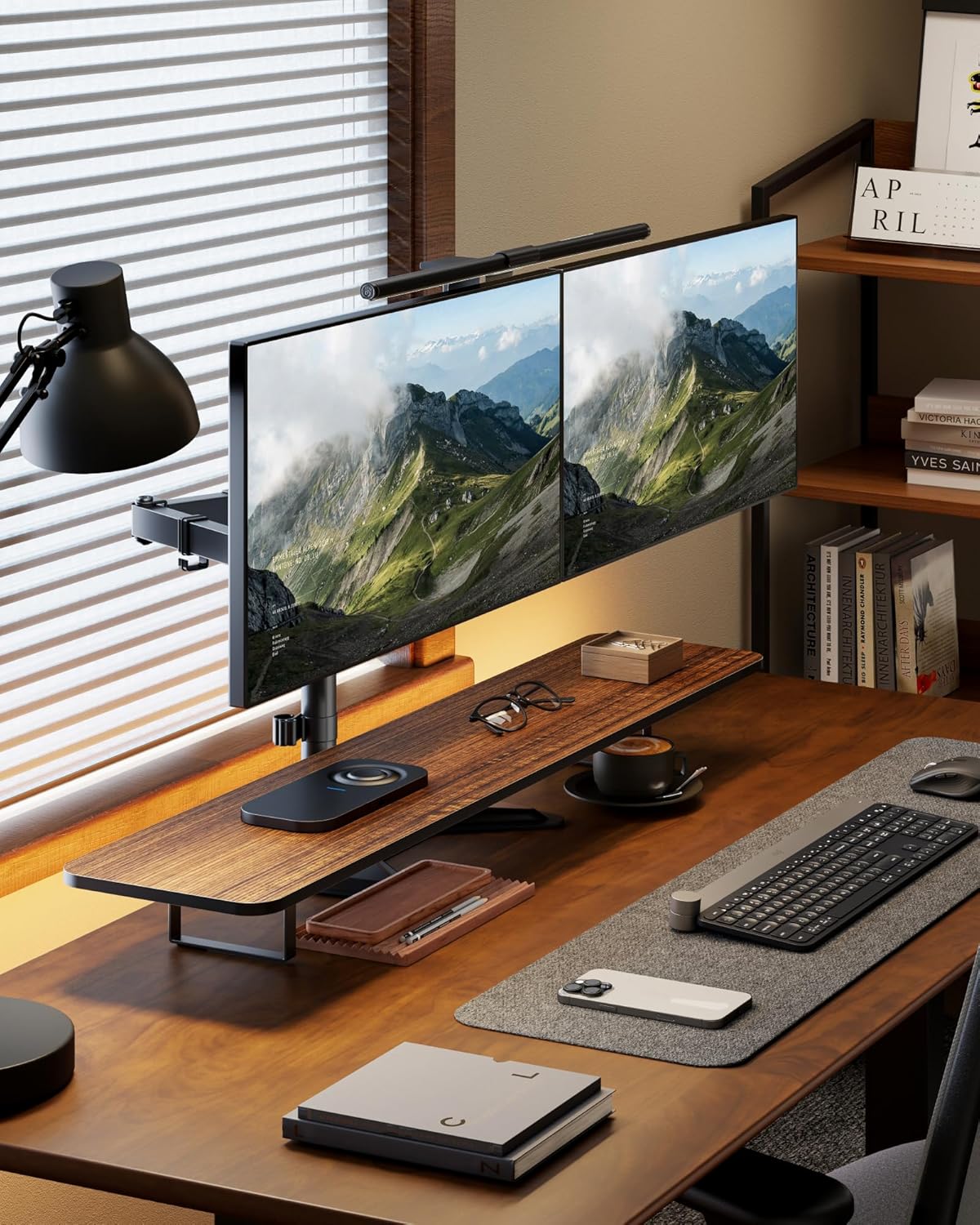 Smooth Arm Movement: Fully adjustable arms extend, retract, and rotate to position your monitors exactly where you need them, whether side by side or stacked for a more ergonomic setup.