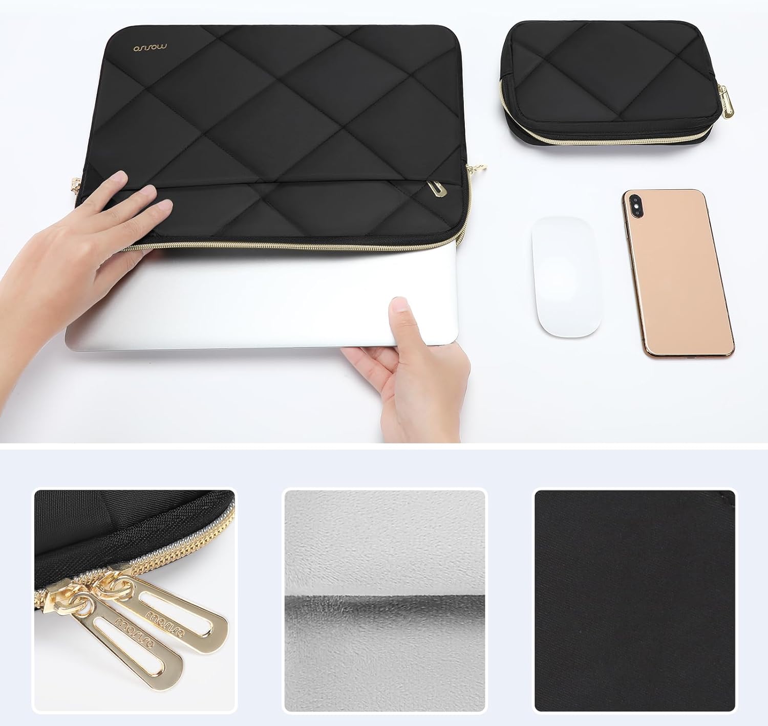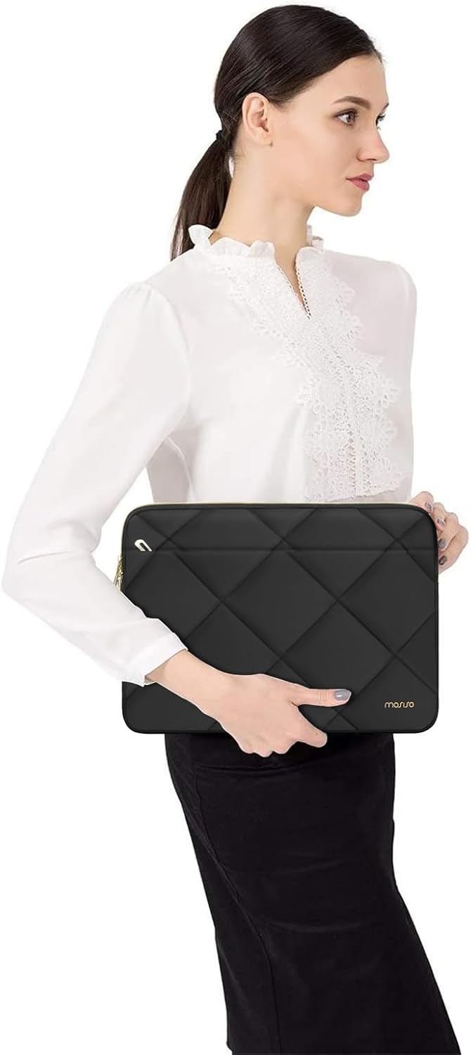 Made with durable rhombus quilted polyester material, features a polyester foam padding layer and fluffy fleece fabric lining. Protect your laptop from bump, shock and accidental scratches.