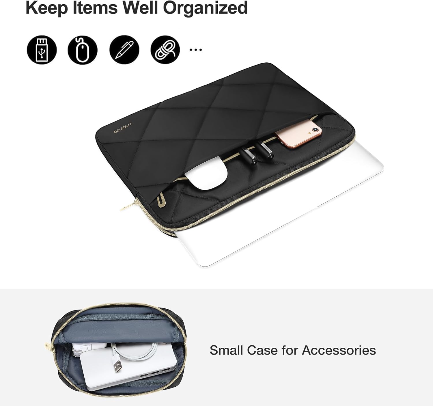 MOSISO 13-14 inch Laptop Case, 13.3 inch Laptop Sleeve Compatible with MacBook Air 13 13.6 M3 M2 M1/Pro 13/Pro 14, HP Dell ASUS Lenovo, Rhombus Quilted Horizontal Bag Cover with Small Case, Black