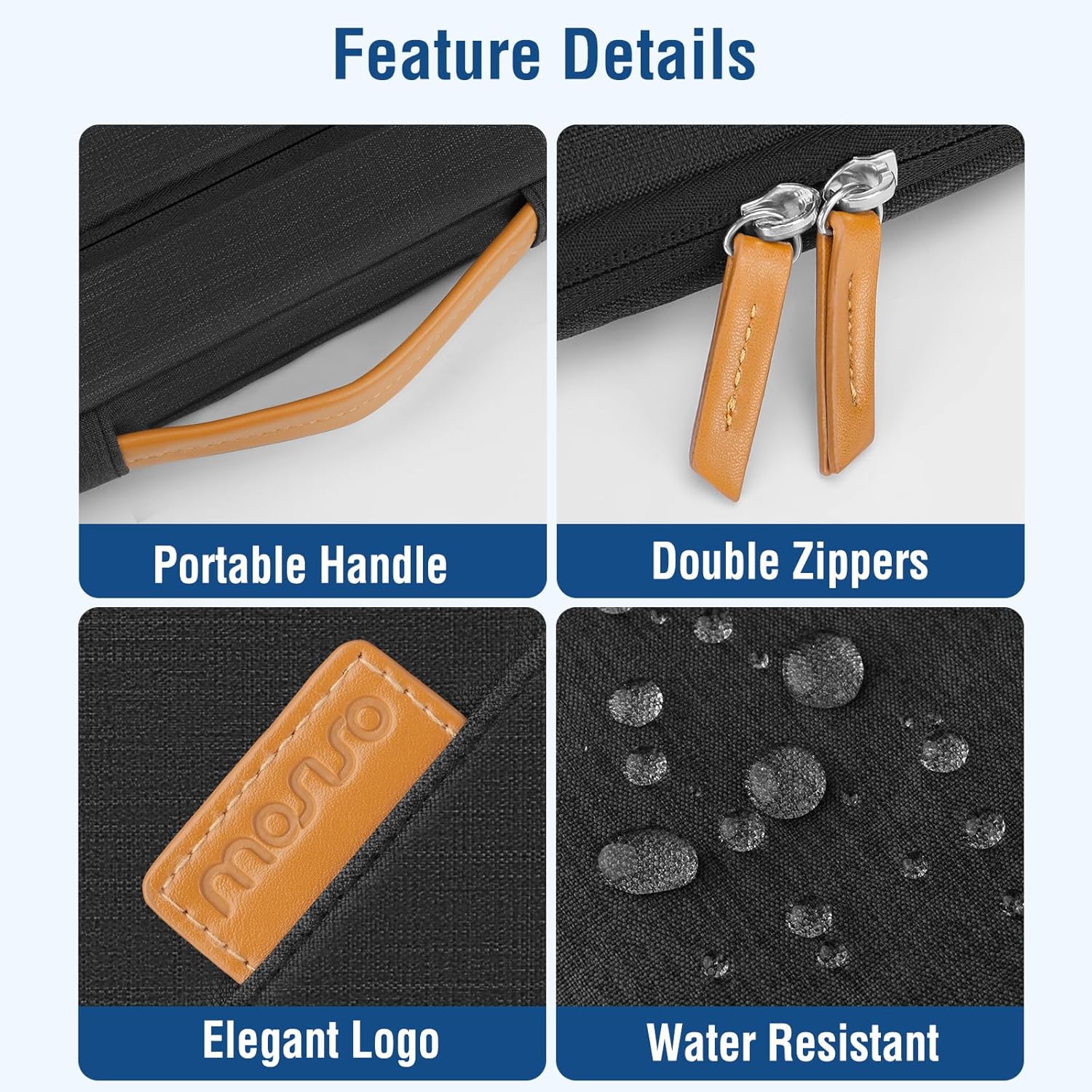 The laptop sleeve with 4 front organizer zippers pockets outer polyester fabric of the case enable you to carry your laptop / notebook / Ultrabook computer in a uniquely sleek style. Features a polyester foam padding layer and fluffy cushion for bump and shock absorption and protection of your device against dust, dirt, bump, shock and accidental scratches.