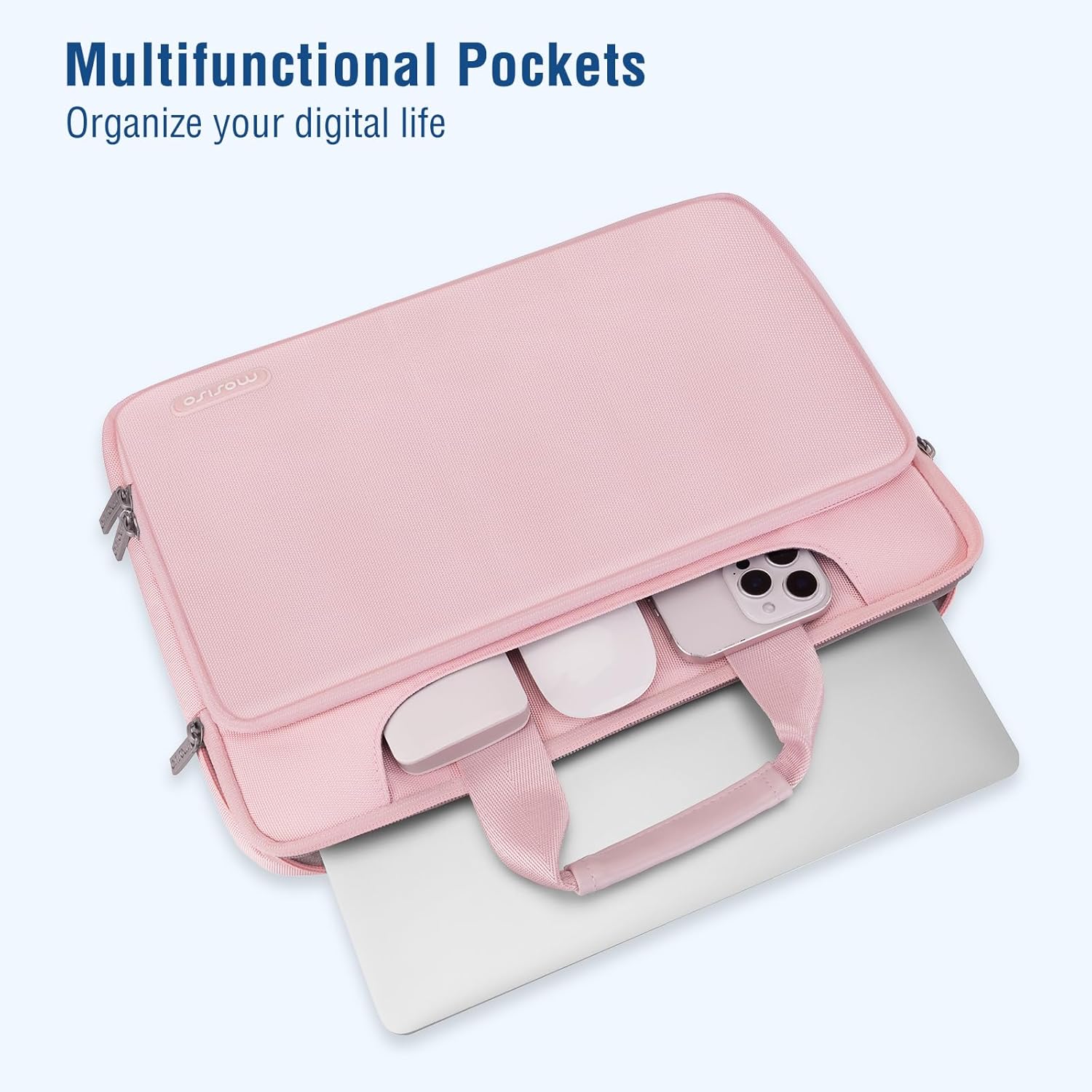 MOSISO 360 Protective Laptop Sleeve Compatible with MacBook Air/Pro, 13-13.3 inch Notebook, Compatible with MacBook Pro 14 inch M4 M3 M2 M1 2024-2021, Matching Color Sleeve Bag with Belt, Pink