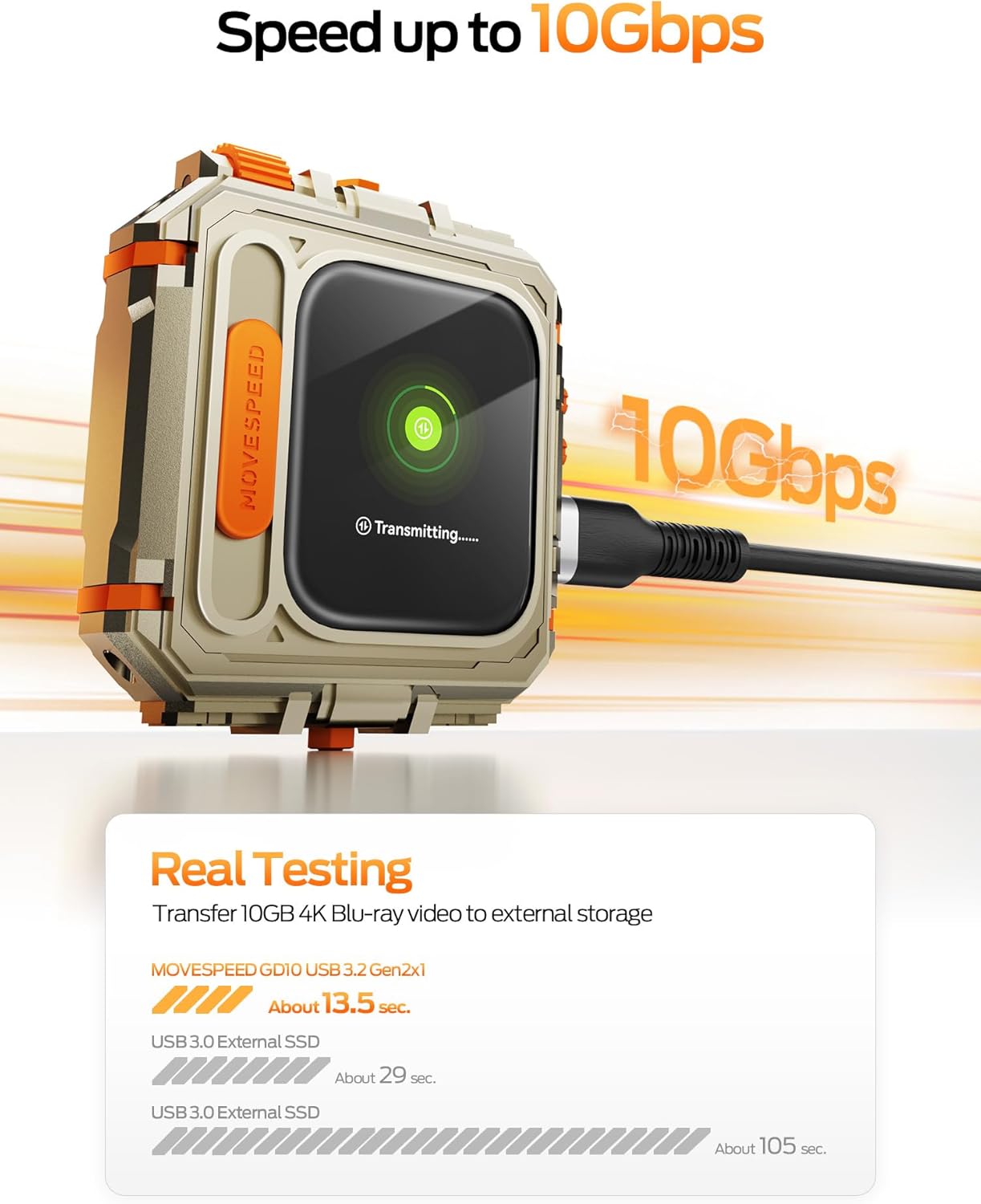 MOVE SPEED External Hard Drive with Touchscreen, Up to 10Gbps Portable SSD, USB-C 3.2 Gen2, Compatible with iPhone, Windows, Mac & More (GD10, 1TB)
