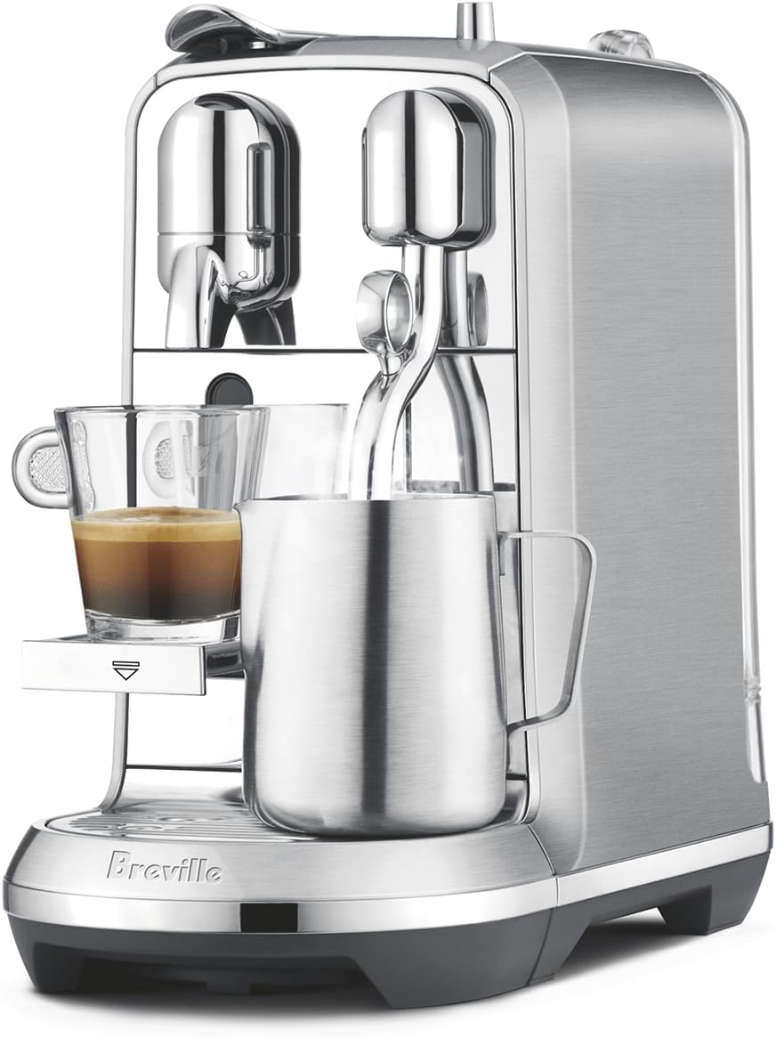 INCLUDES: One Nespresso espresso maker with a sleek, stainless steel design that fits perfectly in any modern kitchen.