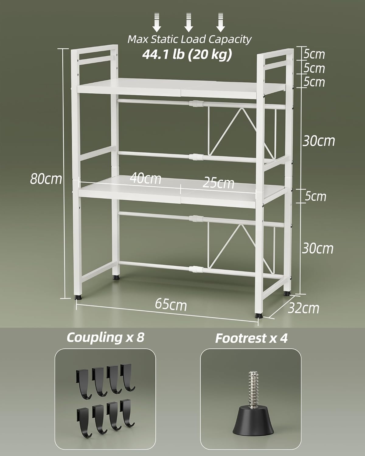 [Fits Various Sizes]: NETEL kitchen counter shelf is extendable in both length(15.7″-25.2″) and height, so it can easily fit almost any microwave oven when you adjust it.