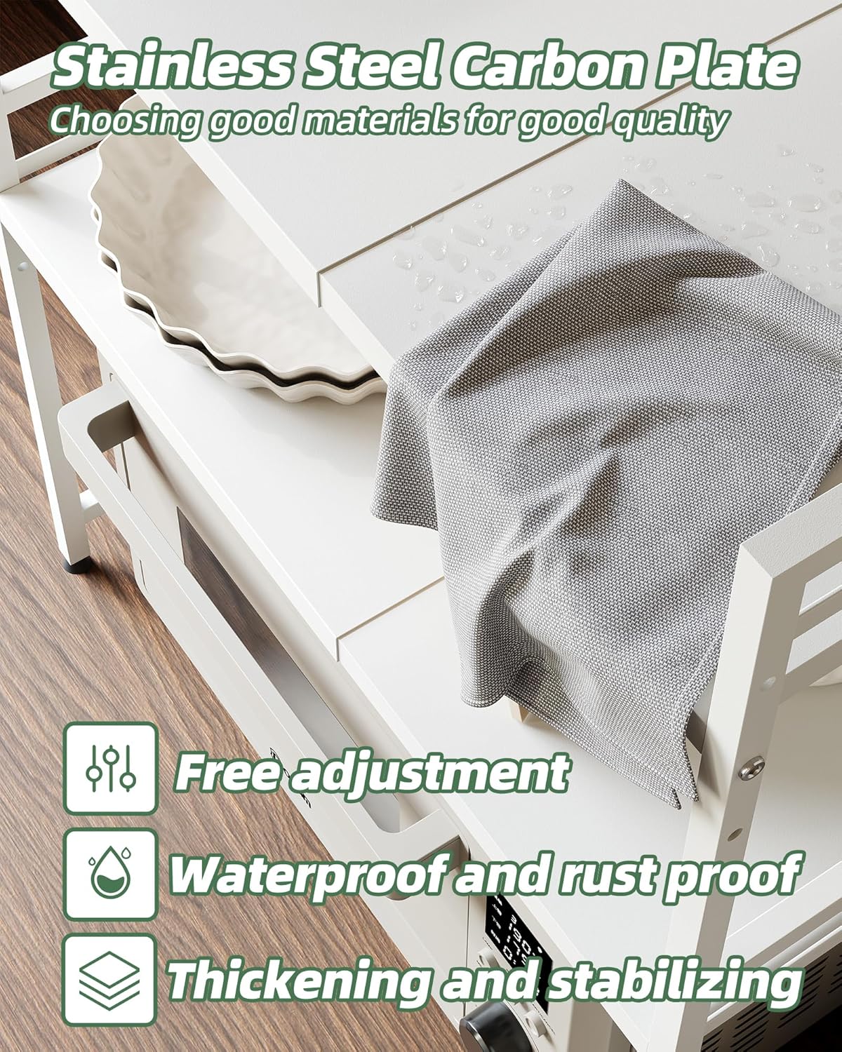 [Stable and Sturdy Material]: The kitchen storage rack is made of carbon steel, covered with an anti-rust coating, smooth surface is easy to clean. The reinforced shelves provide more support and ensure stability and durability up to 55lbs.