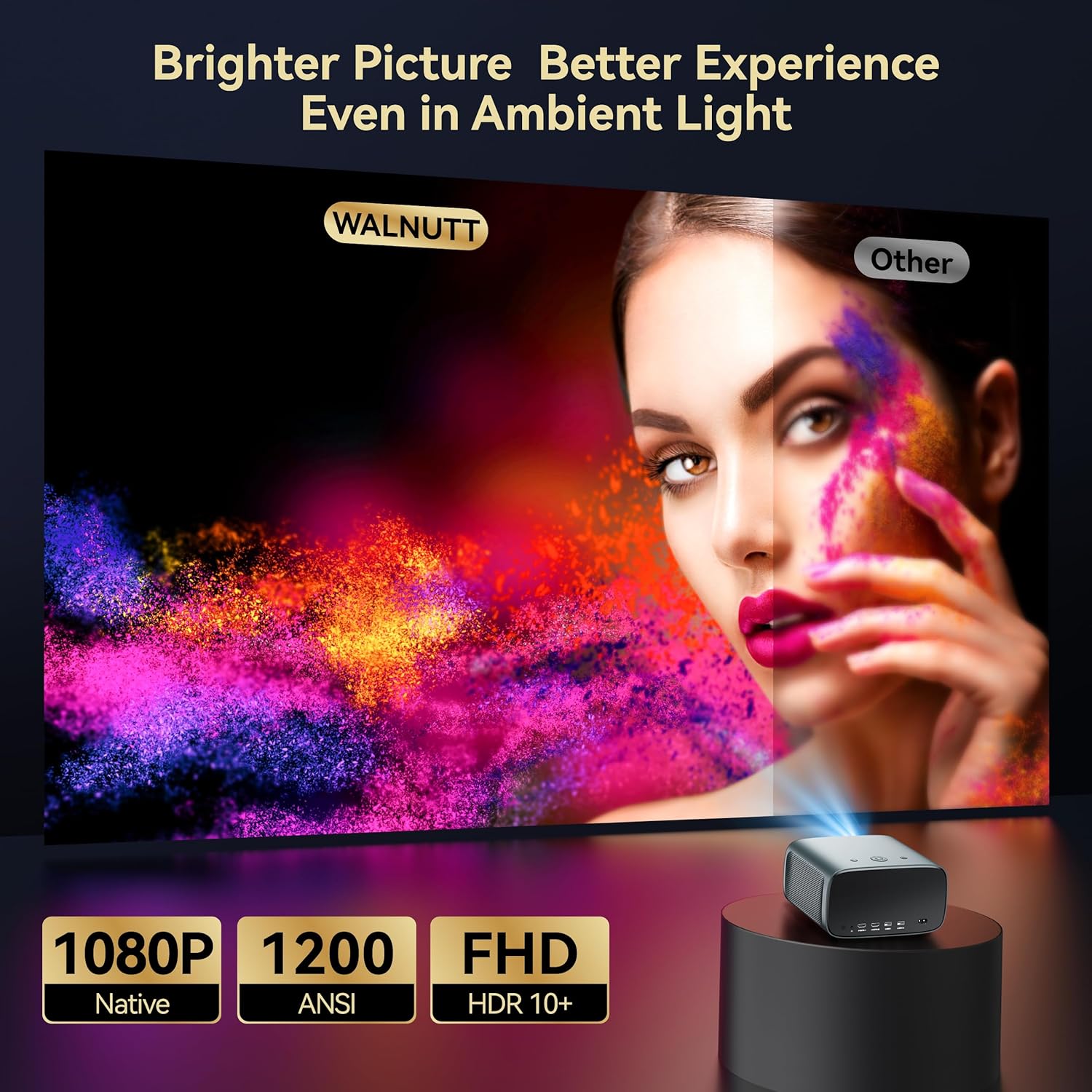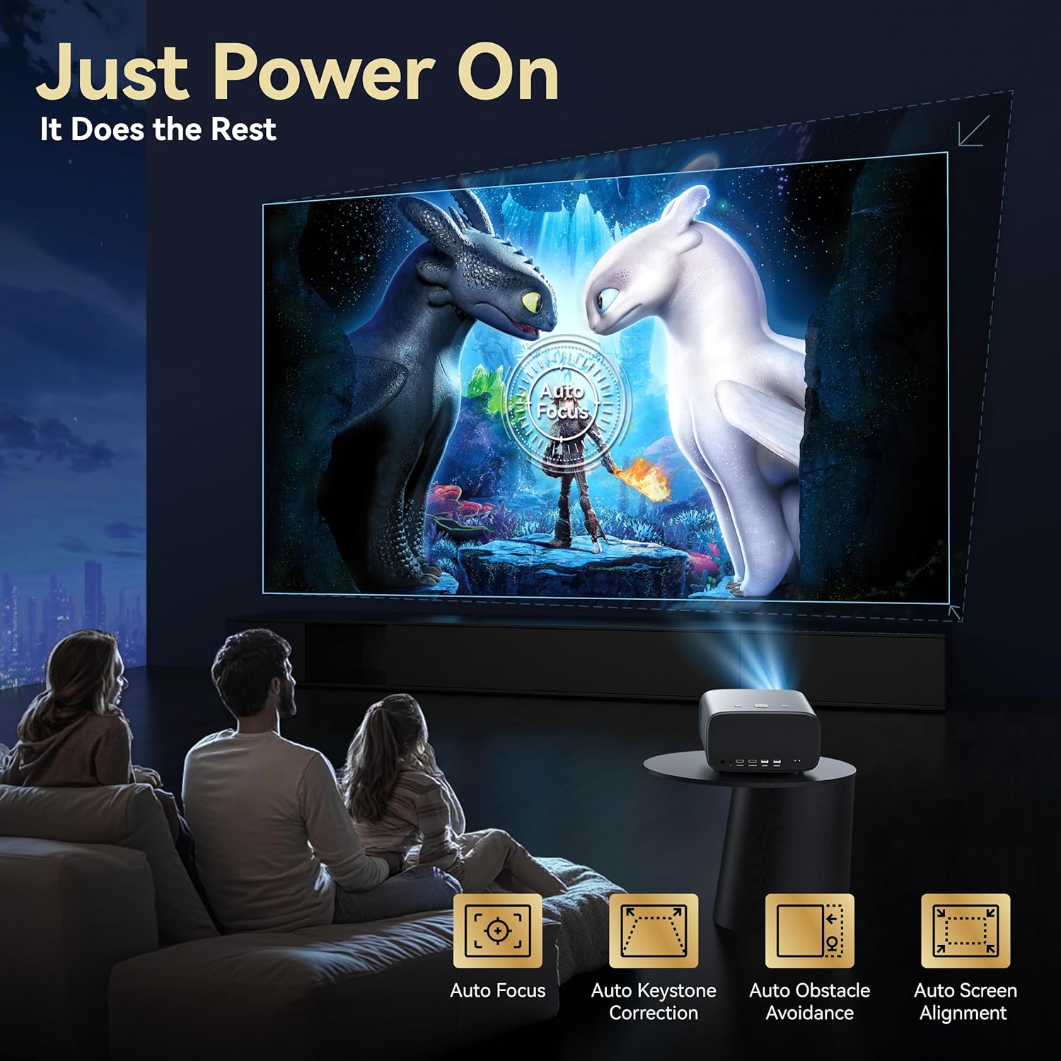 [Unlimited Streaming] WALNUTT projector 4k features official, pre-installed Netflix, YouTube, and Prime Video apps—no extra TV stick needed. One-click access delivers millions of 1080p movies and shows instantly, ideal for movie nights, binge-watching, or relaxing at home. Beyond the big three, simply use the built-in browser or app store to access other streaming platforms.Our apps are regularly updated by professional team for smooth performance and reliable, hassle-free entertainment.