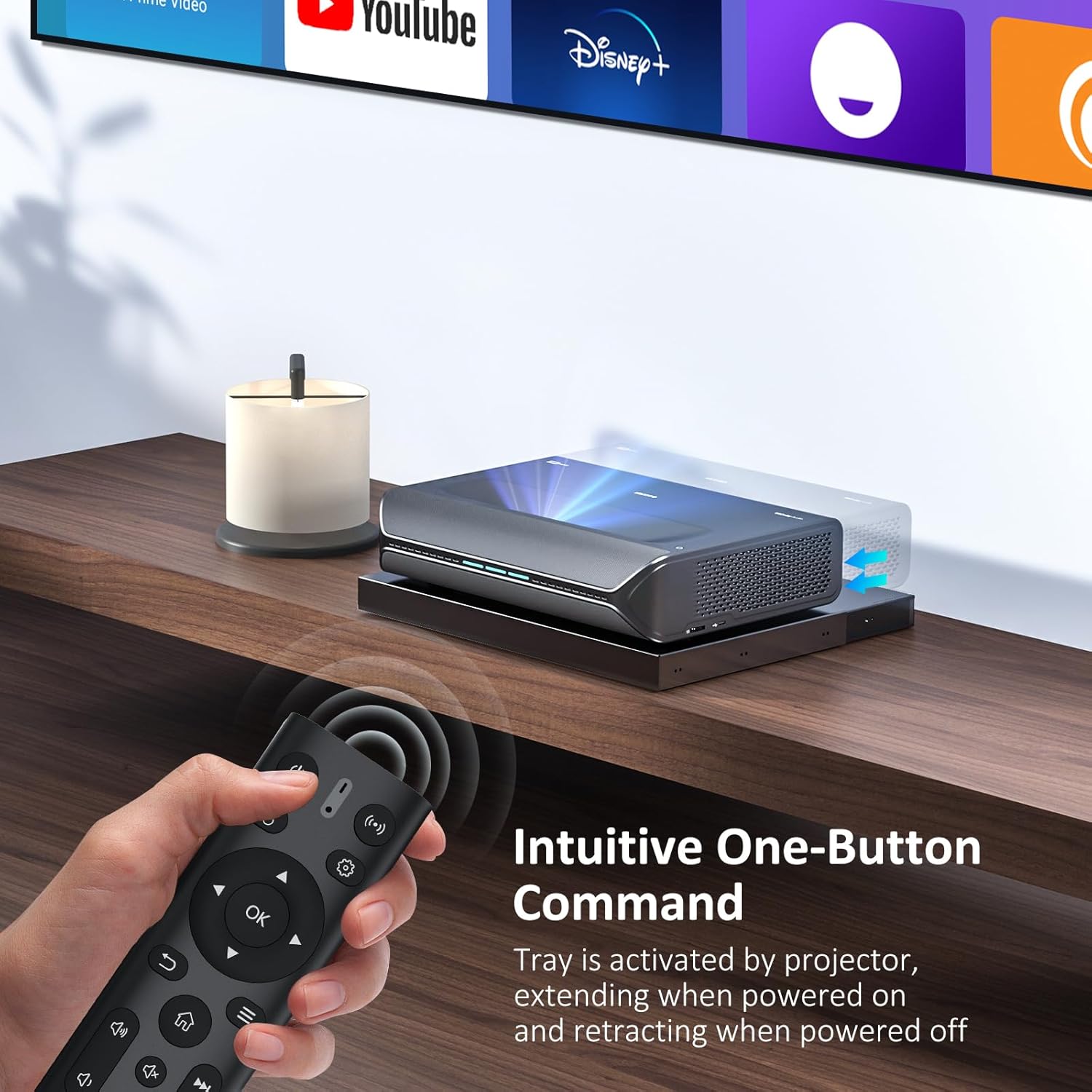 【Achieve Optimal Projections with Ease】Simplify your setup. Preset your distance hassle-free, wait for 45 seconds, and the slider tray memorizes your chosen position, all without any apps or complex steps.