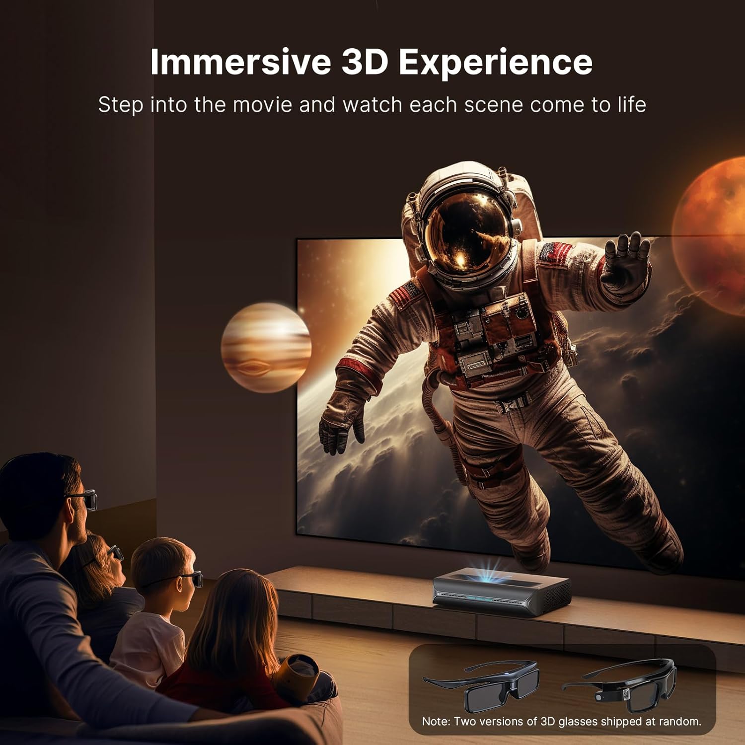【The Sound】Experience an immersive cinematic journey with built-in 60W stereo speakers, including two 15W woofers and two 15W tweeters. The Aurora Pro also supports Active 3D movies and features Dolby Atmos support for state-of-the-art surround sound, with eARC.