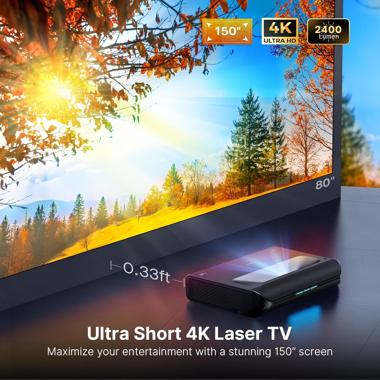 【Dolby Vision】The Aurora Pro is the only UST projector on the market that features Dolby Vision (DV), HDR10+, a native contrast ratio of >3000:1, and dynamic laser dimming. These features elevate the DV rendering to the next level with our improved tone-mapping algorithm.