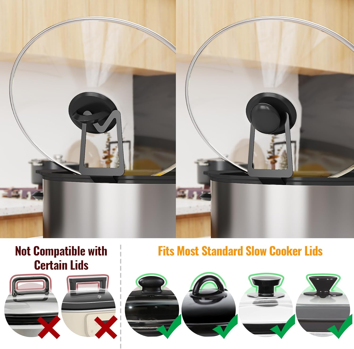 Innovative and Unique Structure: Meticulously designed to fit various common slow cooker lids, ensuring stable placement without wobbling or slipping.