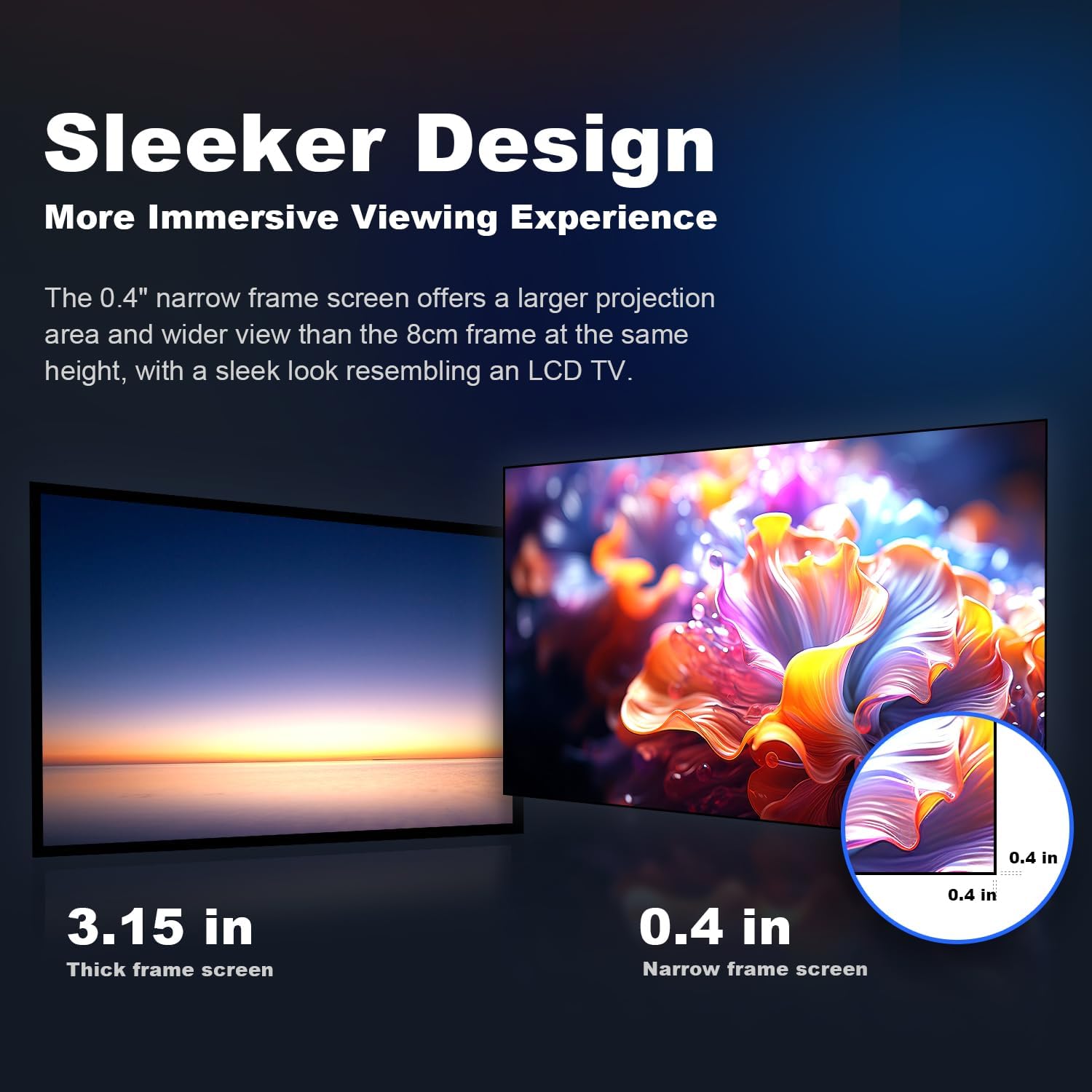 【Ultra-Thin 1cm Bezel for Full Immersion】The sleek 1cm bezel, much thinner than standard 8cm frames, maximizes screen space and enhances immersion, allowing you to focus entirely on the content.