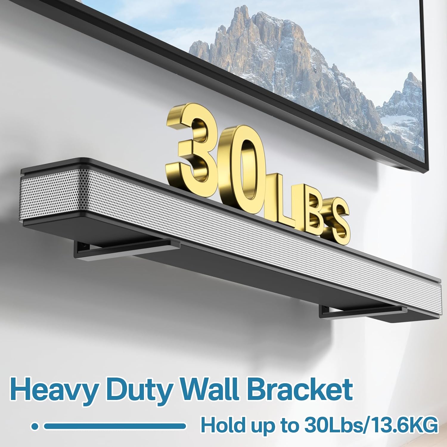 Sturdy And Durable: Built to last, this sound bar wall mount is crafted from premium materials and can securely hold soundbars weighing up to 30 pounds. The L-shaped sound bar shelf design prevents obstructions, ensuring optimal positioning for peak performance.