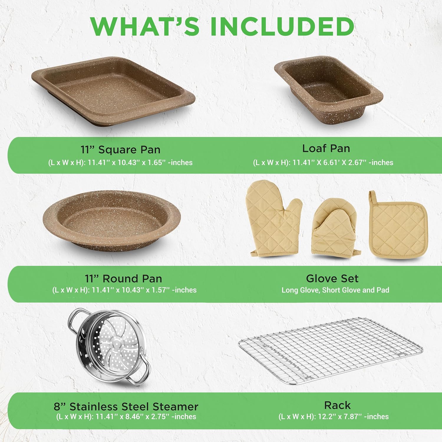 MULTI-SIZED COOKING POTS – Master the art of versatile cooking with our bakeware set’s multi-sized pots, with glass lids for precise temperature control. From small to large, these pan kits cater to all culinary needs, ensuring perfectly cooked meals.