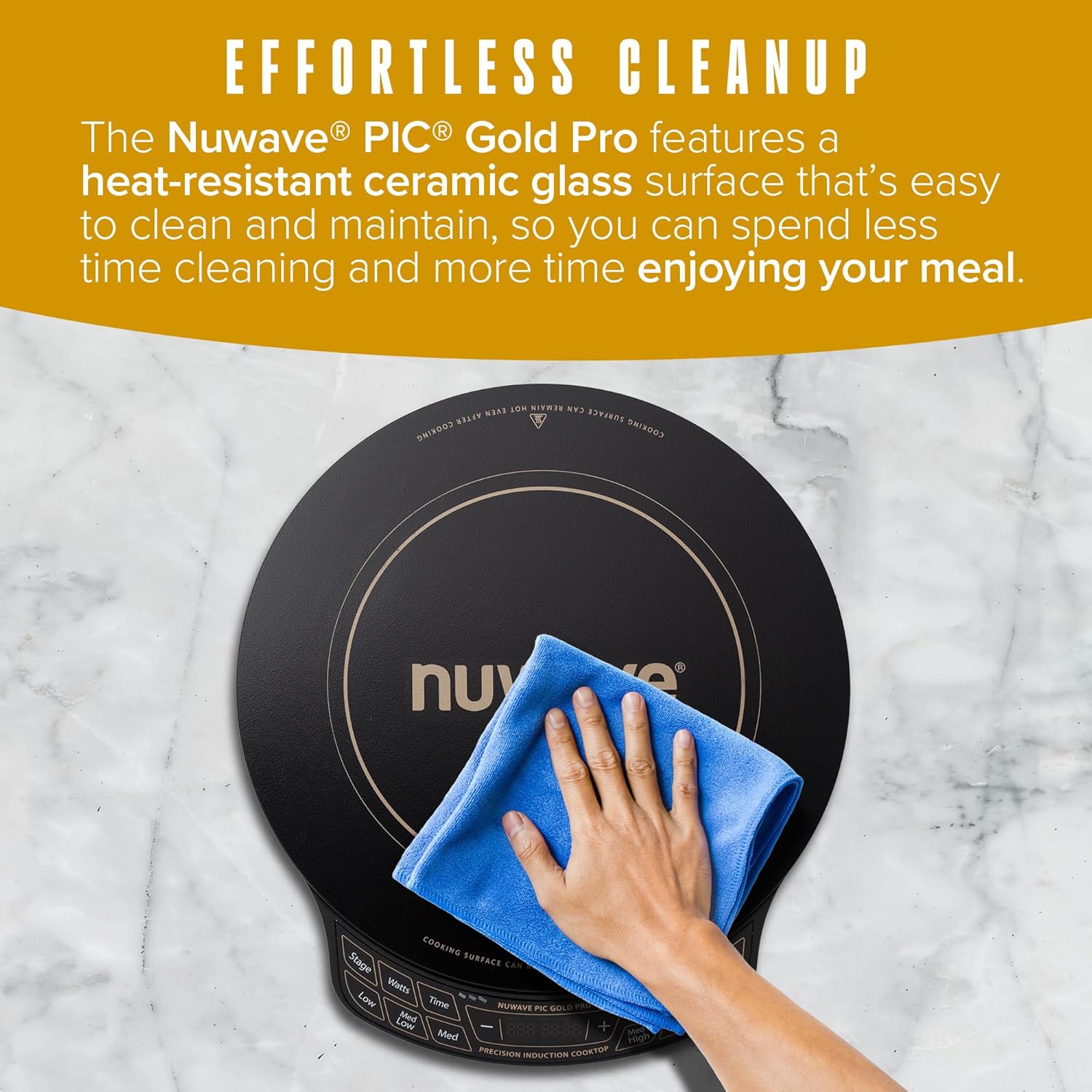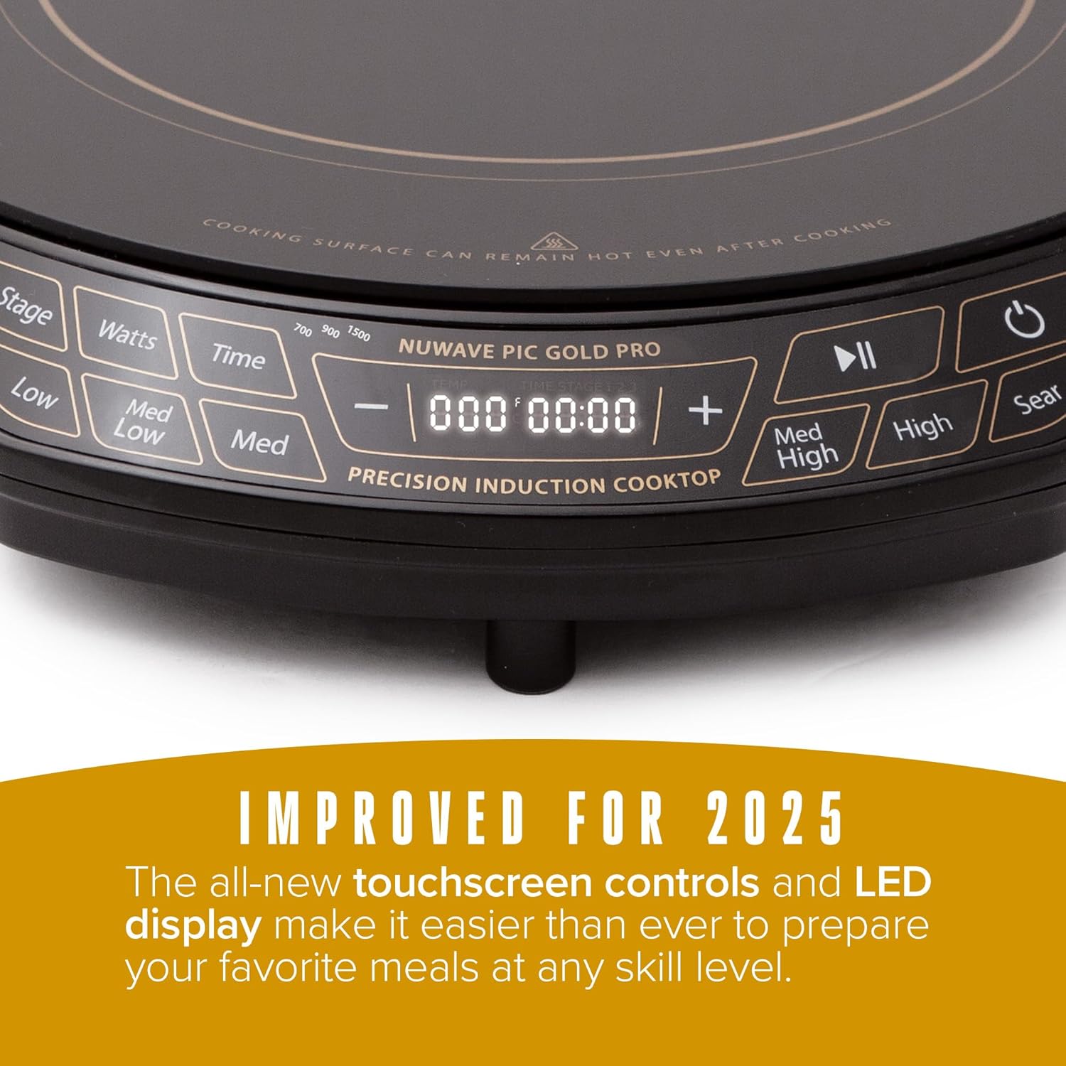 DURABLE WEIGHT CAPACITY – The Nuwave Gold Pro holds up to 50 lbs, ideal for large cookware like cast-iron skillets or heavy pots. This high weight capacity allows you to cook bigger meals without worrying about stability or overloading.