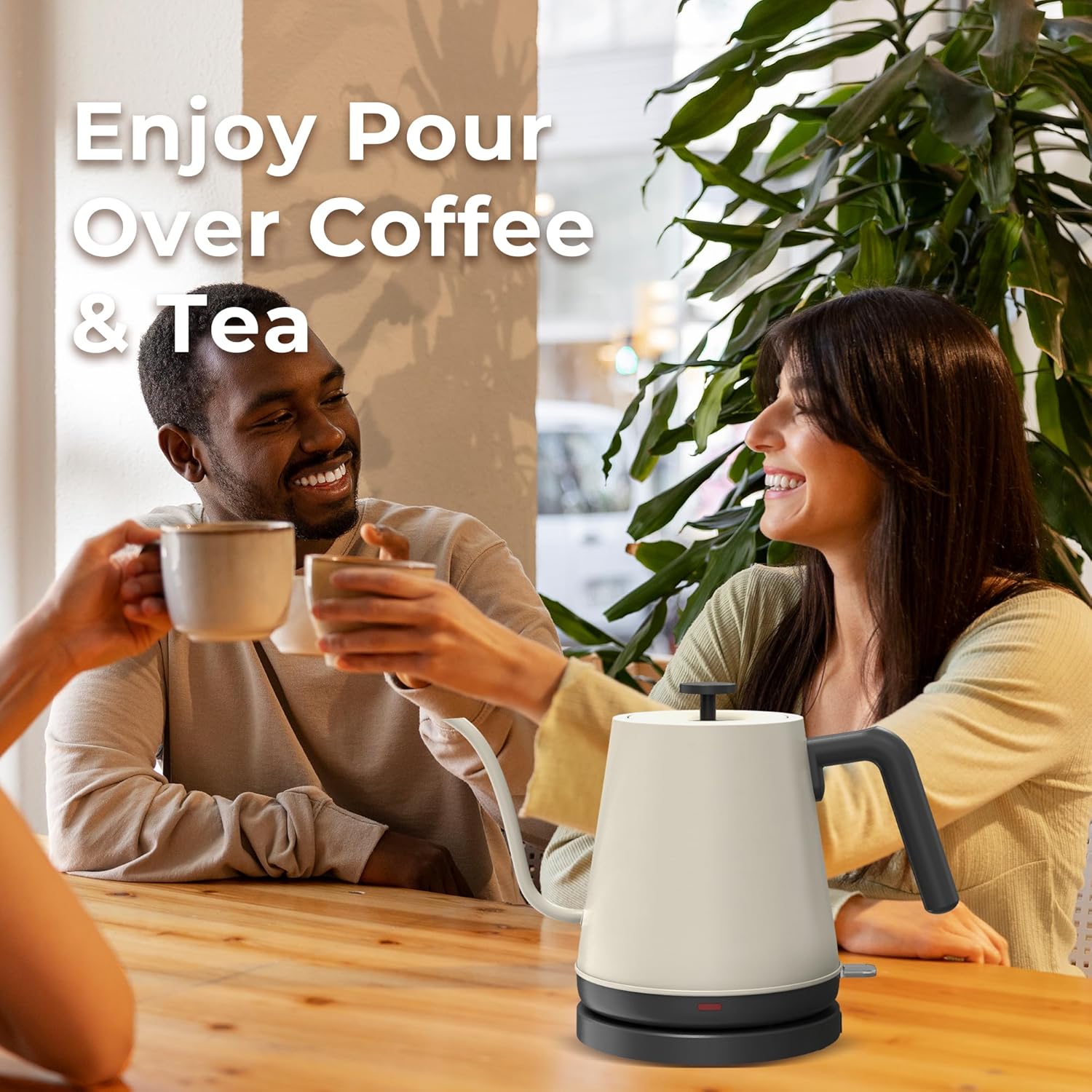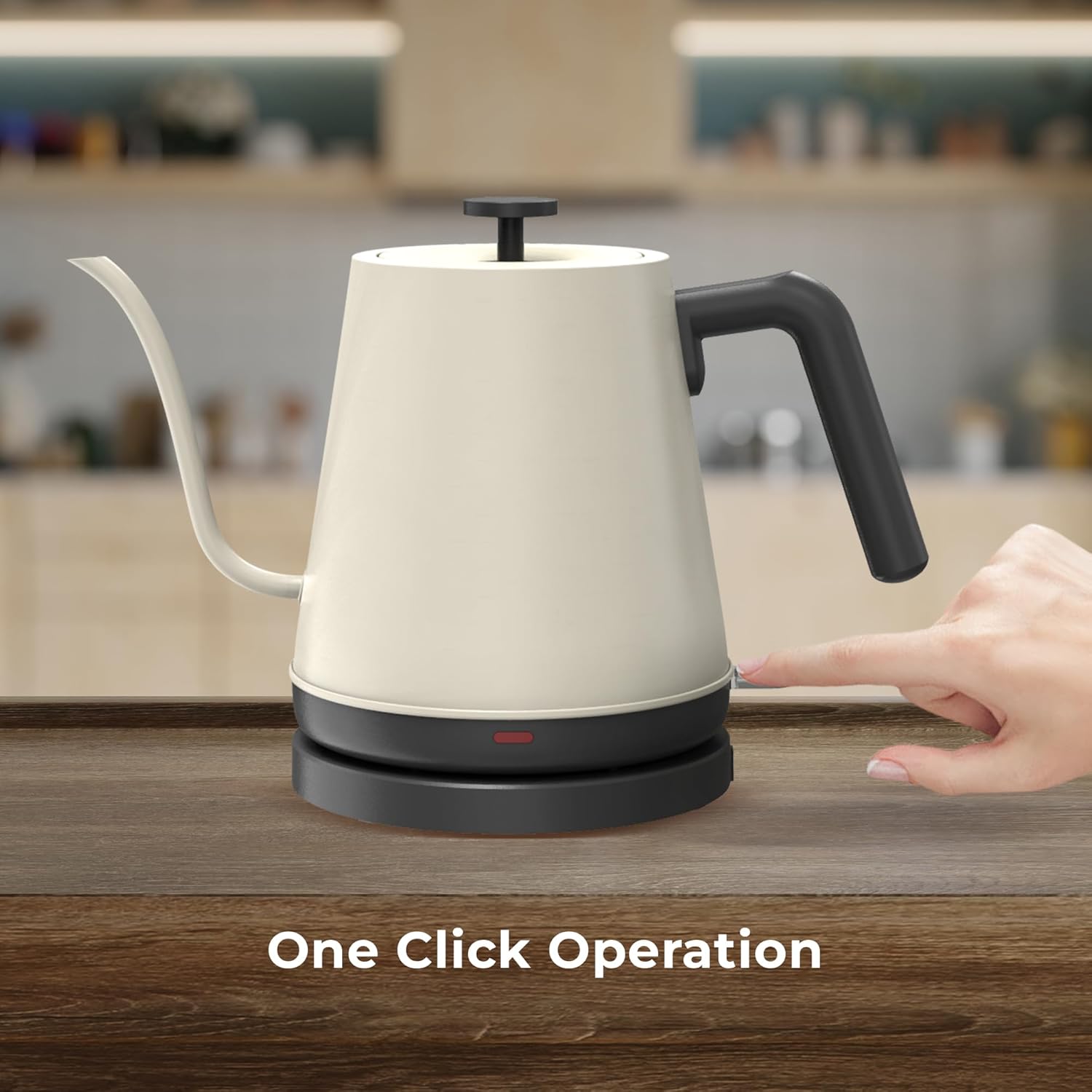 【Stunning Gooseneck Kettle】Our gooseneck kettle is in a beautiful bone-white color. Unlike the typical black kettles that are everywhere, this unique shade adds a touch of elegance to your kitchen.