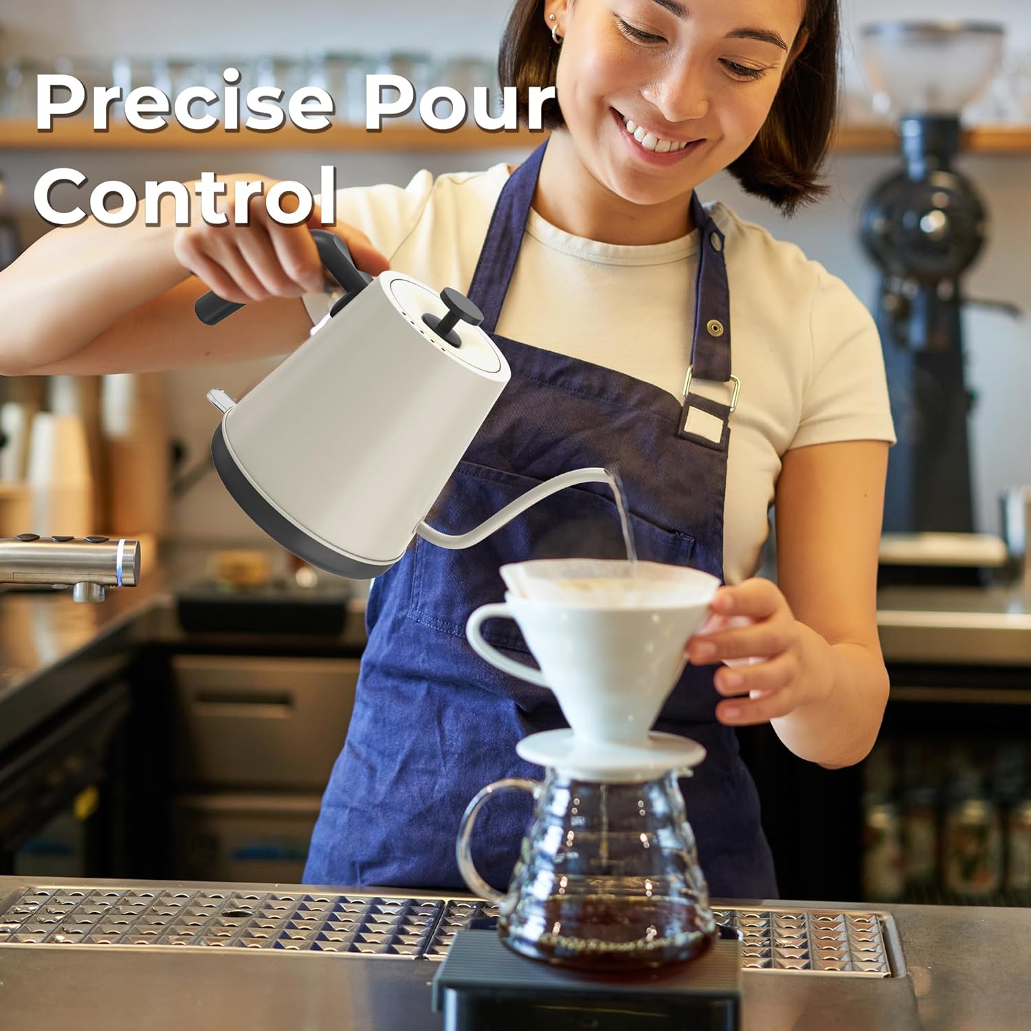 【Precise Pour Control】The electric gooseneck kettle features a long spout and a comfortable handle, allowing for precise water flow control. It is the ideal choice for pour-over coffee or tea.