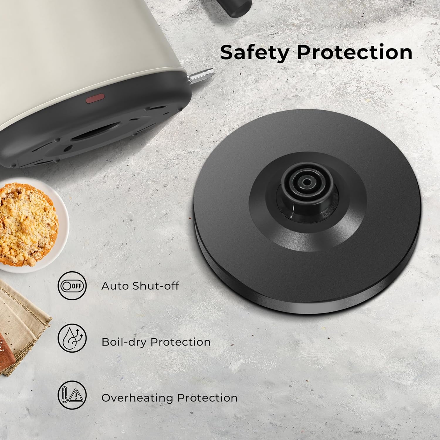 【Auto Shut off & Boil-dry Protection】Electric tea kettle is equipped with multiple safety features, including automatic shut-off to prevent overheating and boil-dry protection to stop operation when there’s no water. Enjoy peace of mind while boiling water!