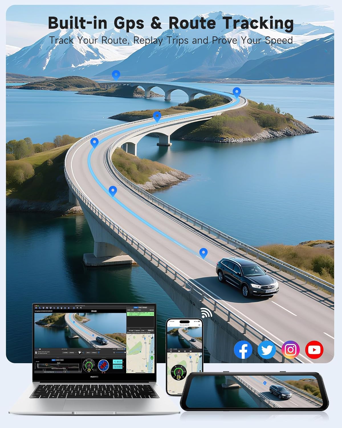 Crystal-Clear 4K+2.5K Dual Recording: The mirror dash cam captures ultra-sharp footage with front 4K (3840×2160) and rear 2.5K (2560×1440) resolution at 30fps. Its 170° front and 150° rear lenses eliminate blind spots, while advanced HDR ensures perfect exposure in all lighting conditions. The sensor delivers exceptional detail for license plates and road signs, providing crucial evidence for insurance claims. Night vision capabilities maintain clarity even in low-light environments