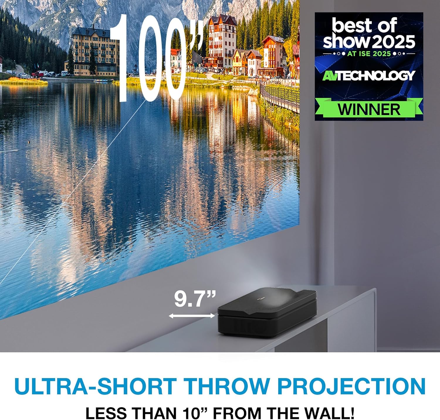 BIG IMAGE IN SMALL SPACES – Enjoy a stunning 100-inch image from less than one foot away from the wall or projection surface bringing big screen entertainment to small apartments, college dorm rooms or any compact space.