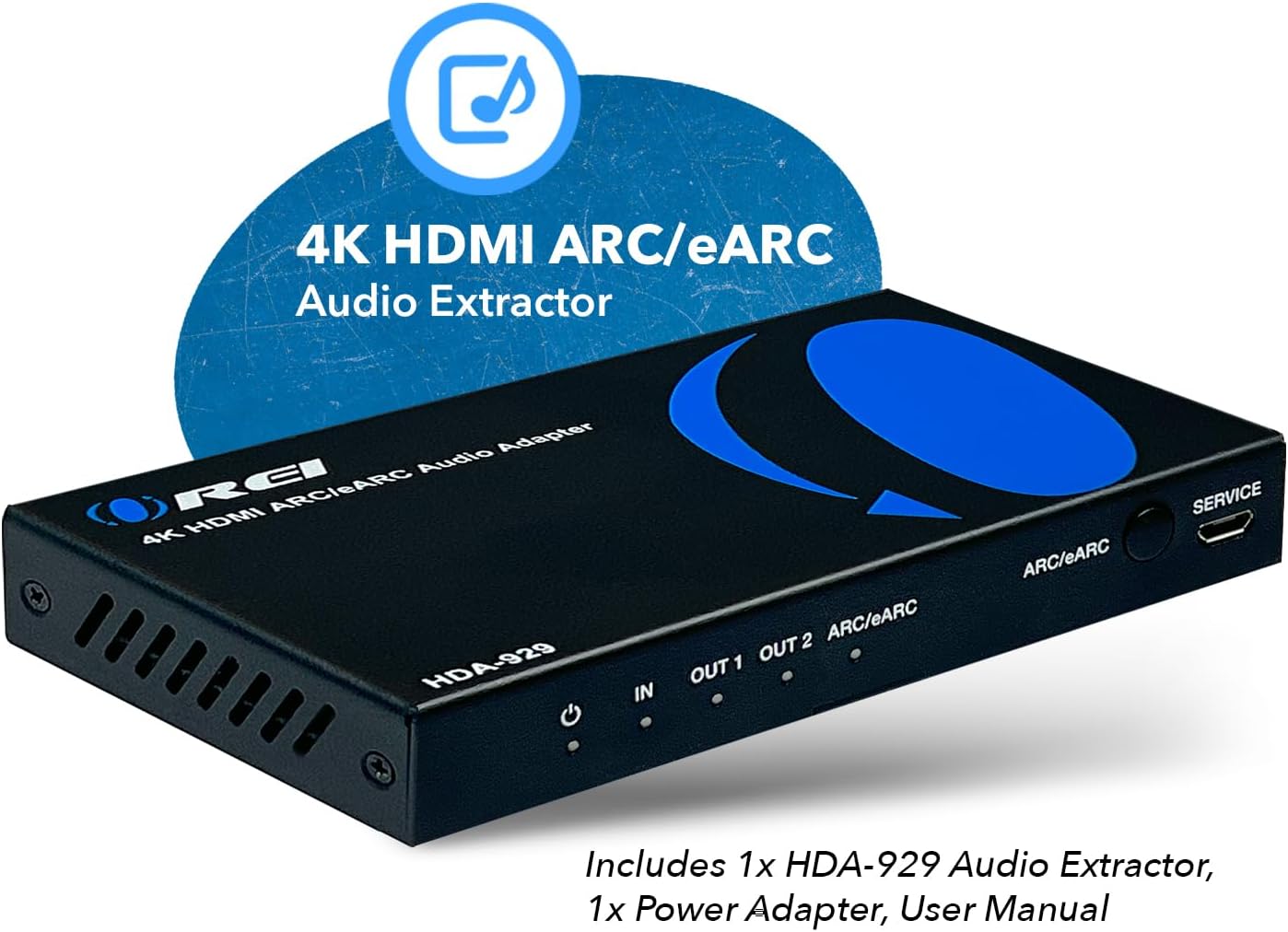 Extract eARC Audio from your external source to HDMI to eARC (Dolby Atmos) Compatible Soundbar; Auto eARC detection when using the TV’s App or external devices. The device comes with a dual voltage supply using a US plug, and an adapter/converter is provided for international use.