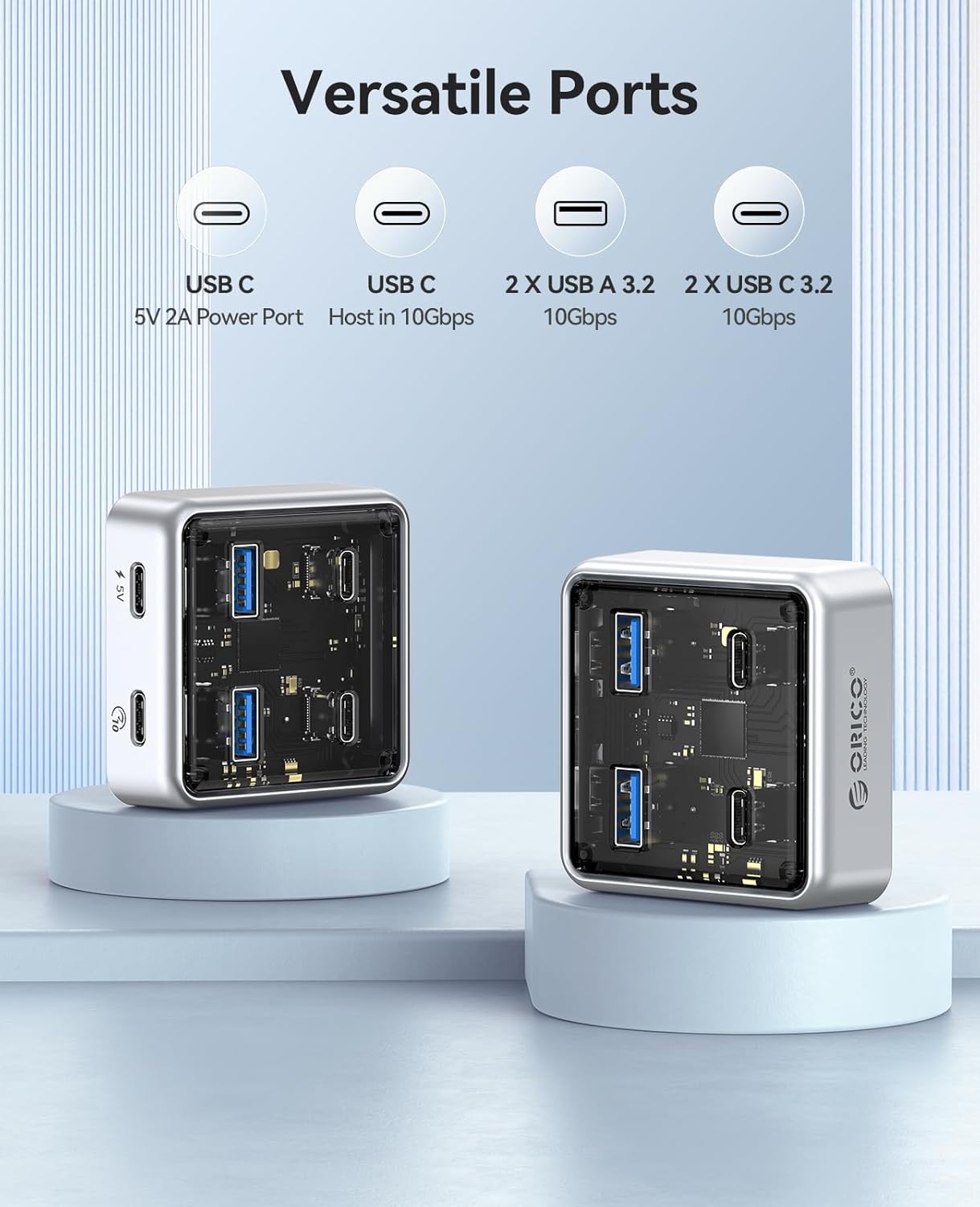 ORICO 10Gbps USB-C Hub, 4-Port Zinc Alloy USB 3.2 Splitter with 2 USB-A & 2 USB-C Ports, High-Speed Data Extender for Laptops, PCs, Desktops, and More (1.64Ft)