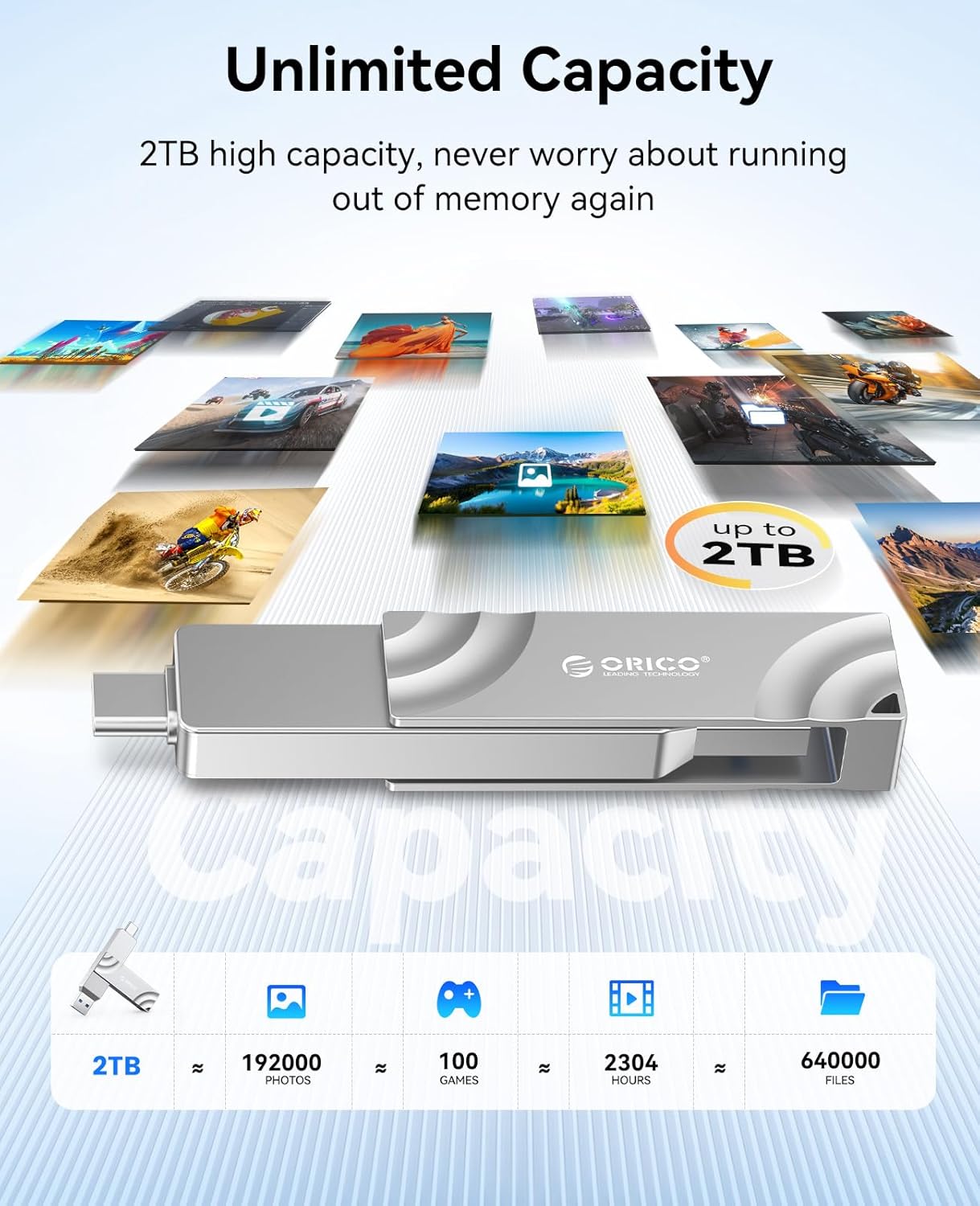 Versatile Dual Interface Design: Dual-interface with 360-degree rotation and 90-degree lock for seamless compatibility across USB C and USB A devices, ensuring secure connections and efficient data transfer