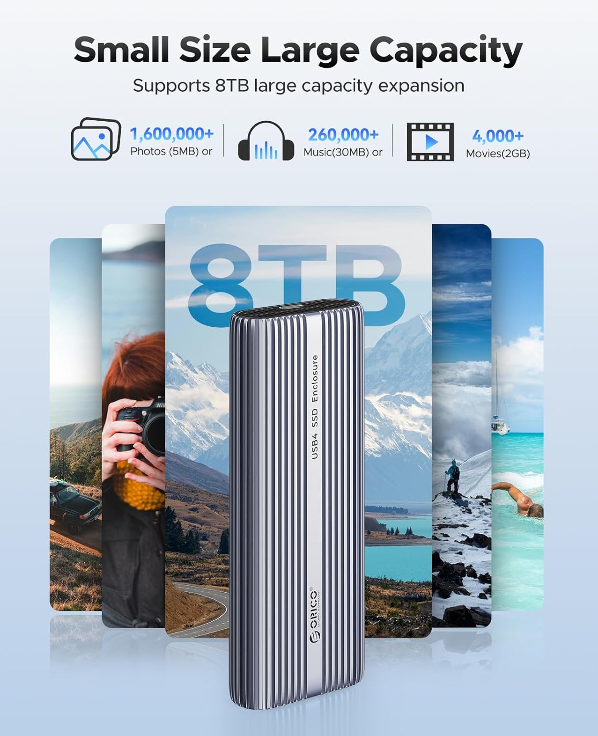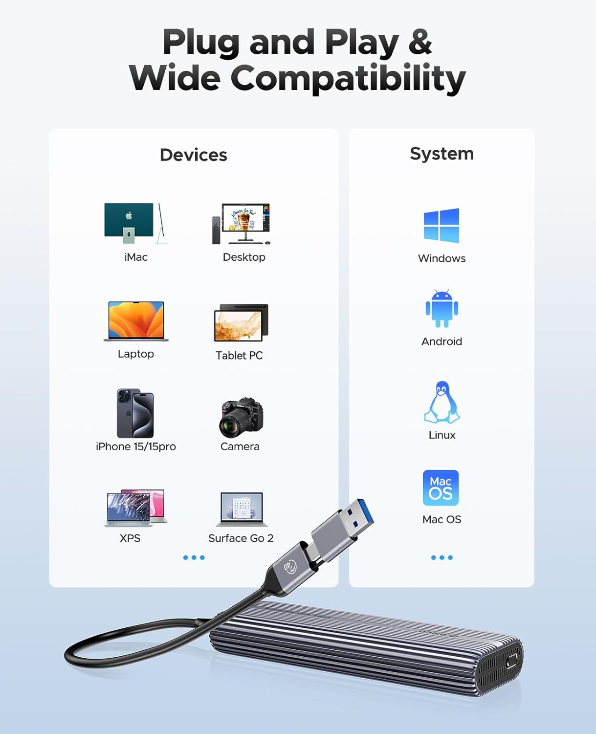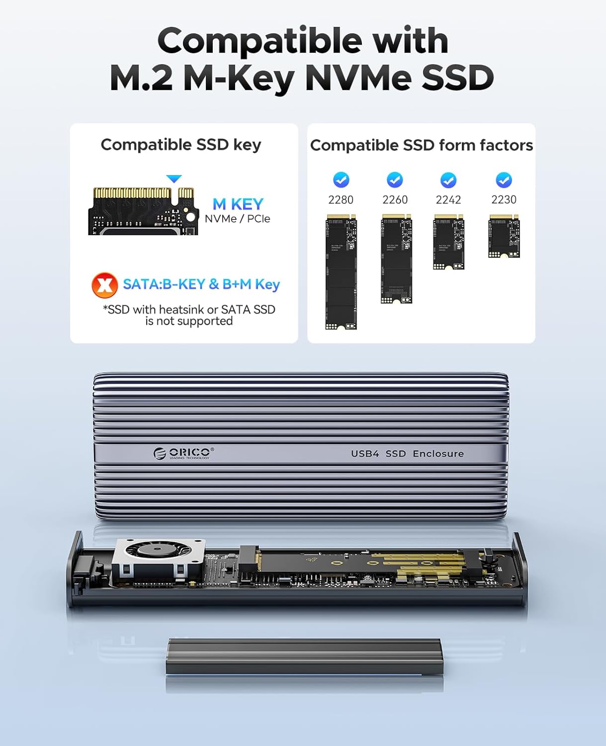 Broad Compatibility: Supports M-Key 2230/2242/2260/2280 SSDs and Thunderbolt 3/4, USB4/3.2/3.1/3.0 ports. Fully compatible with Windows, macOS, Linux, and Android. (Note: Not compatible with SATA AHCI M.2 or mSATA SSDs)