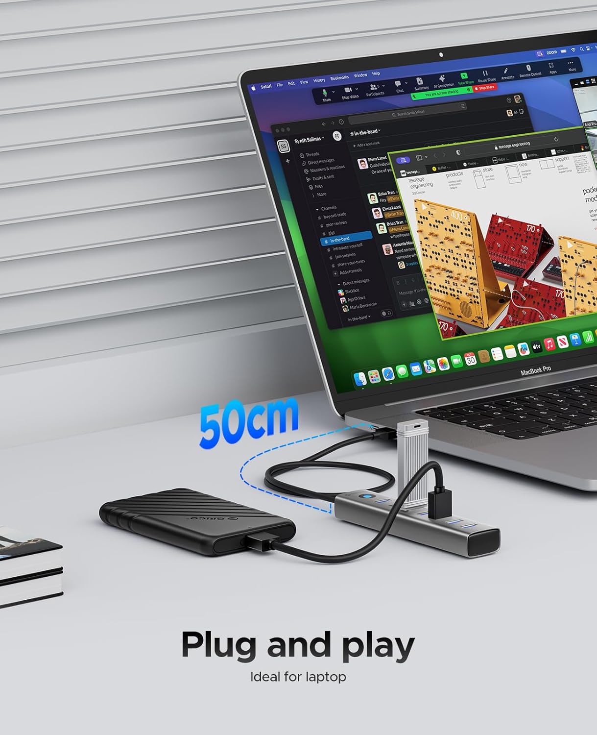 【Compact and Portable】 The 7-port USB 3.0 hub is designed for portability, with a cable length available in 0.5m (1.64ft) , making it perfect for use at home, in the office, or on the go