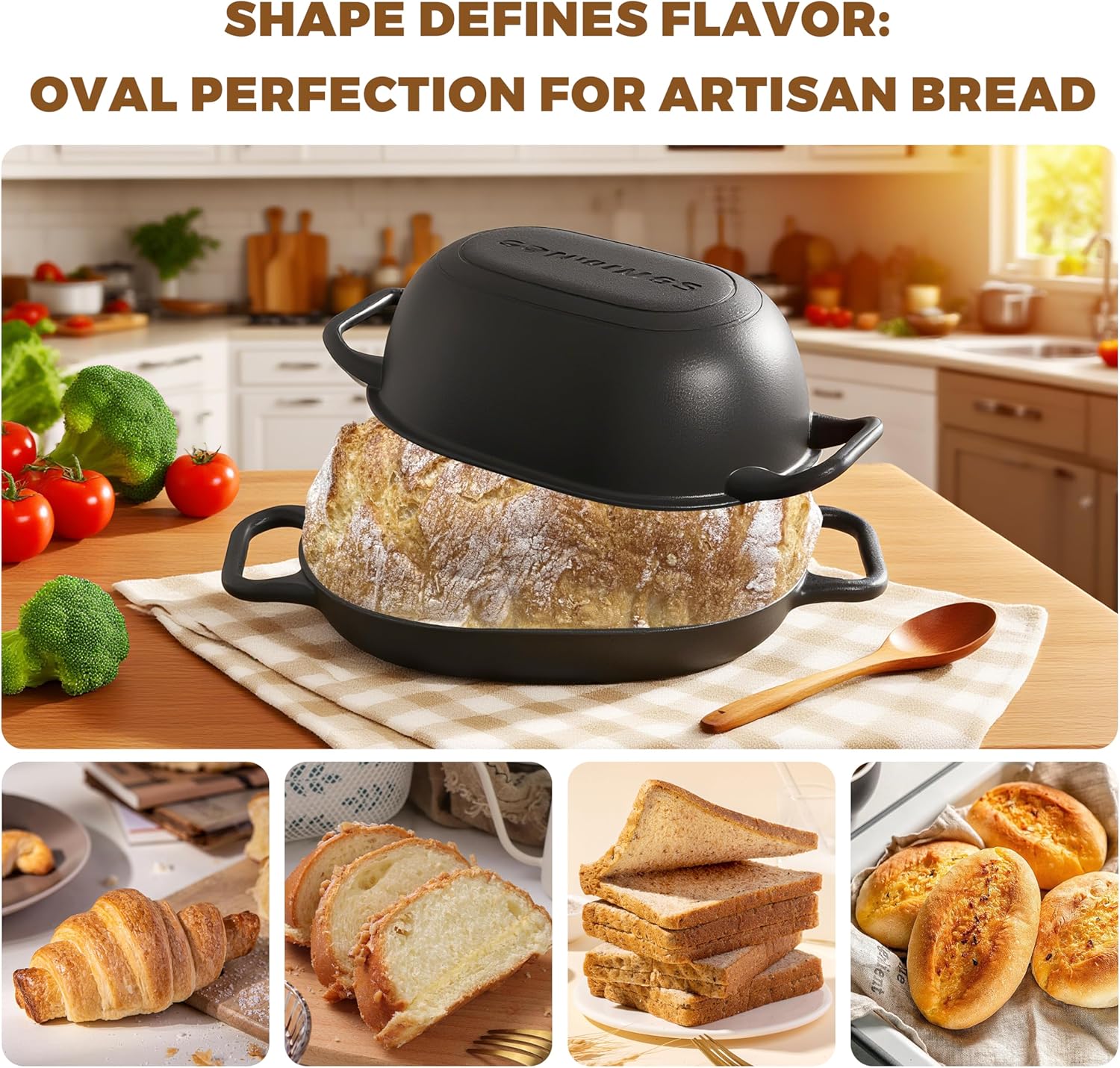 Elevate your craft with a dutch oven for sourdough bread baking, meticulously designed to replicate the ambiance of a professional bakery. The 5QT oval form ensures even thermal circulation, yielding rustic loaves with a crisp, golden crust and authentic artisan character