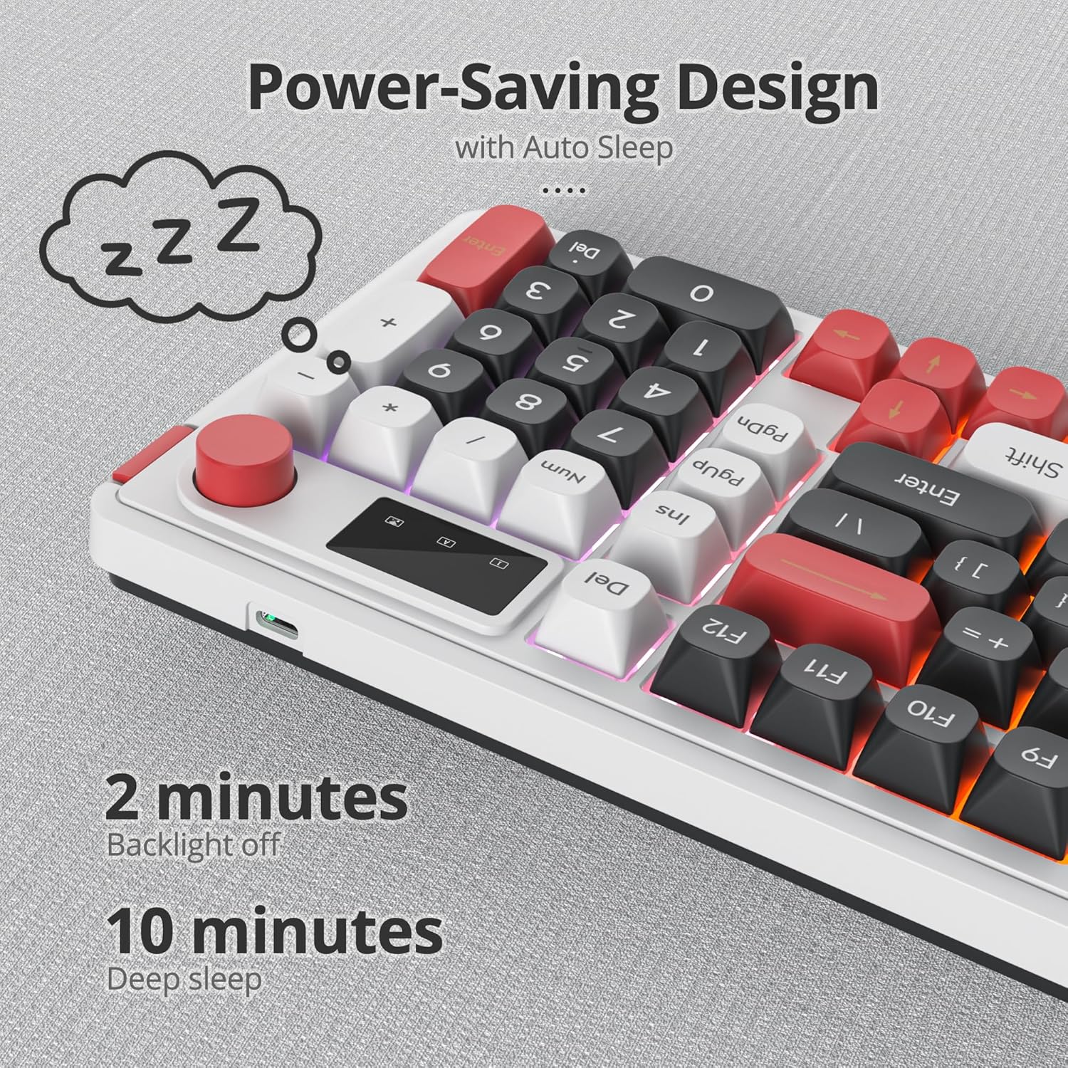 【Compatible with Mac and Windows】Owpkeenthy 98 is compatible with operating systems, from Mac to Android to Windows. Switch FN+A、FN+W between systems and devices.