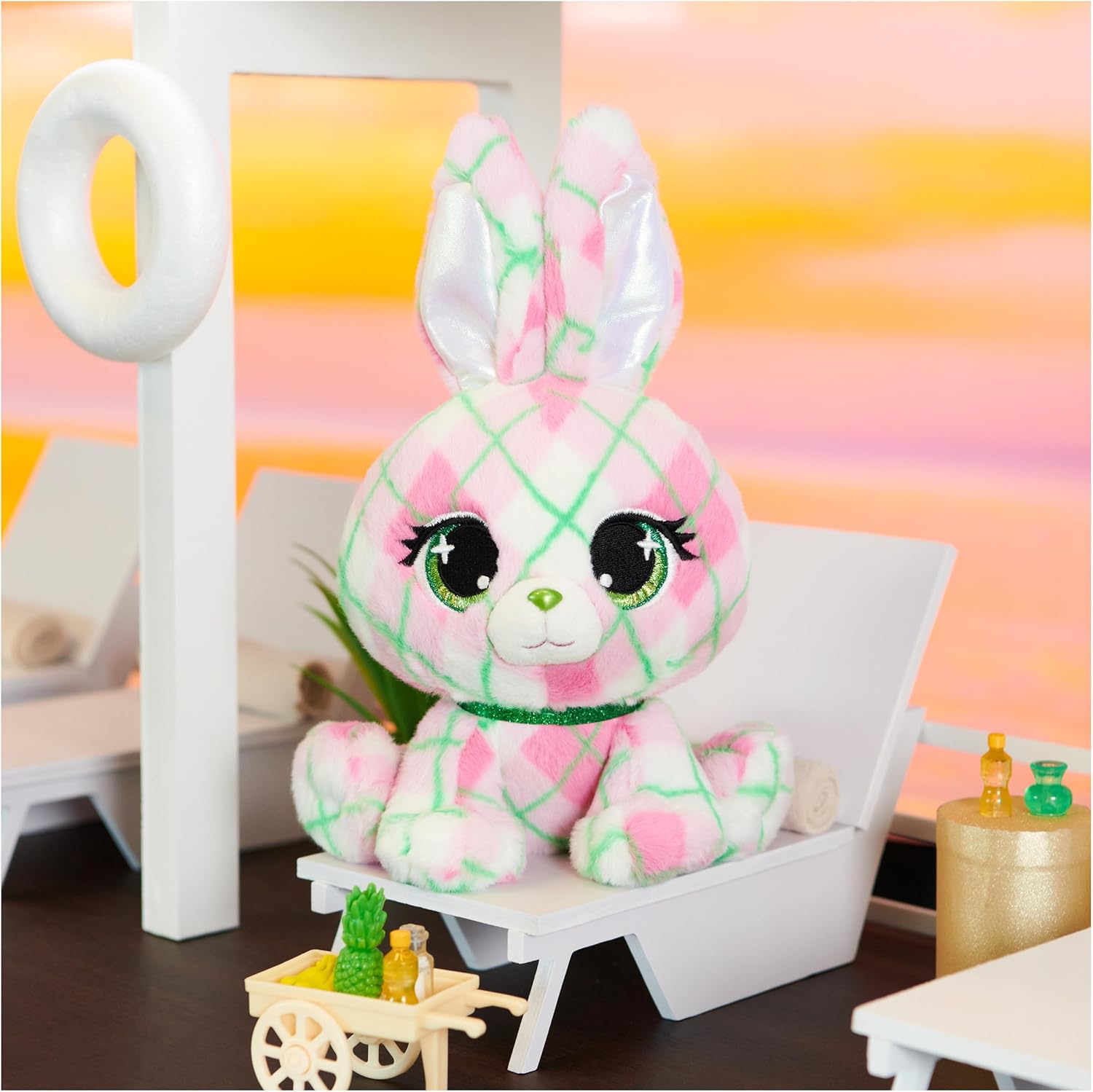 Kennedy Karats is a true classic. This beautiful bunny has pastel plaid printed plush with an iridescent lining in her ears. Her gorgeous green eyes match her sparkly collar and are accented with a white shadow that matches her puffy tail. You can find Kennedy on Martha’s Vineyard riding her bike around town, taking in the sights. P.Lushes Pets are designer plush from all around the world who love to look their best. Everywhere is your personal runway with P.Lushes Pets! This stylish squad of fabulous fashionistas serves chic with a sprinkle of attitude and a whole lot of glitter. Luxe, premium fabrics and a sparkling collar enhance their fashion-inspired looks! Collect them all, from scented Juicy Jam styles to birthstone-inspired Gem Stars, to find all Limited Edition and Special Edition chase plush.
