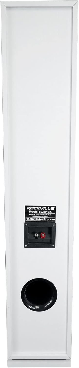 The RockTower 68W passive tower speaker delivers audiophile grade sound quality at an unbeatable price!. . Design. The Rocktower series of speakers come in 3 beautiful finishes. This listing is for the White grain. We also offer it in classic wood grain, and black grain. The bottom of the speaker has a concealed and sturdy stand to finish the look. We also designed these to look great with the grills or without grills so you can rock the style you desire.. . Power. The power handling is an incredible 125 watts RMS each speaker! Even if you over-power these a little it would be fine because we under-rate their RMS power. The peak burst rating is 500 watts.. . 3-Way smart configuration. This speaker is built with a very smart configuration. It is a 3-way speaker that separated the highs, mids, and bass to different drivers. We use (2) 6.5″ woofers to drive the bass, and (1) 6.5″ driver dedicated to the midrange frequencies, and a 1″ silk dome tweeter for crystal clear high frequencies.. . Enclosure. We enclose the speakers in a high quality MDF tower enclosure. (NO particle board Allowed!). We added a vent to the enclosure to give the low frequencies a boost. These sound great on their own and they sound even better with an added sub.. . Rear panel. Our rear panel features everything you want in a passive speaker. The gold plated 5-way binding post terminals give the flexibility to use banana plugs, spade terminals, or bare wire.. . Impedance options. This listing is for the 8 ohm version and it is perfect if you want to run 1 to each channel of your amplifier or if you want to run 2 in parallel to each channel of your amplifier.