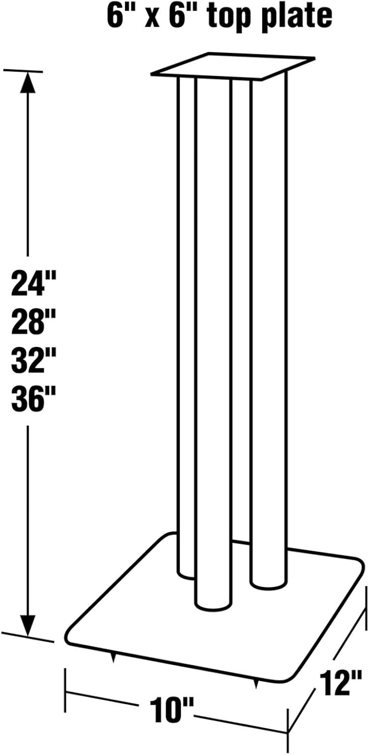 The 6” by 6” steel top plate matches a wide range of speakers; the 10” by 12” heavy gauge steel base plate combined with four adjustable steel cone point spikes provide excellent stability and easy leveling on any surface