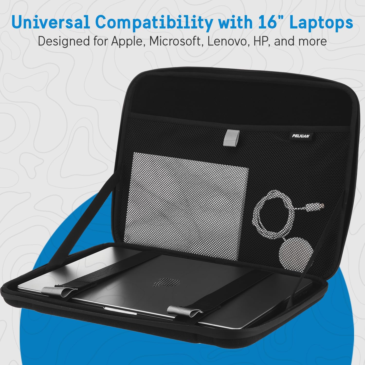Rugged Sleeve for Laptops : Keeps your laptop safe with a four layered hard shell Pelican case that offers unparalleled protection for your laptops, MacBooks, or Chromebooks up to 16.2 inches, as well as extra mesh storage for carrying power adapters, keyboards, mice, tablets, and other laptop accessories